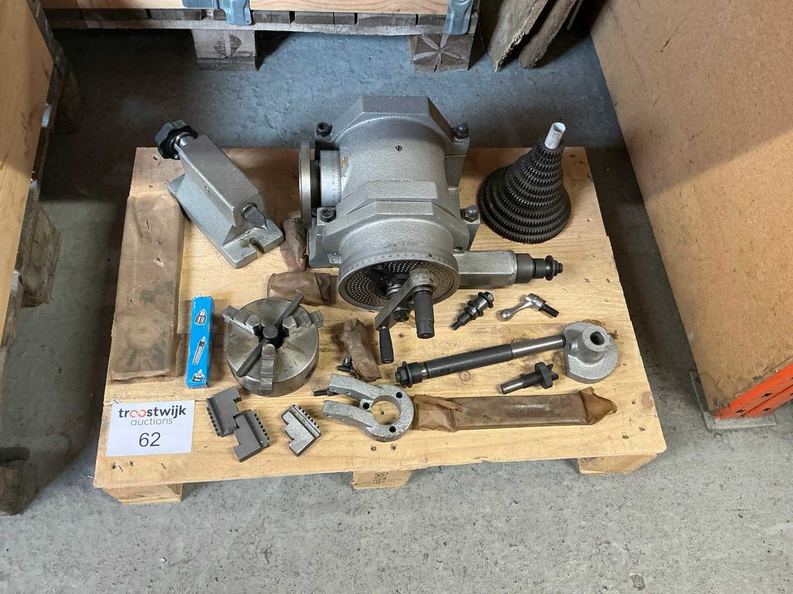 Incluye contrapunto y accesorios, incluyendo engranajes intercambiables de 125 mm, y engranajes intercambiables y varios/ sin usar/ sobre paleta Auction-ID: A1-44221-62