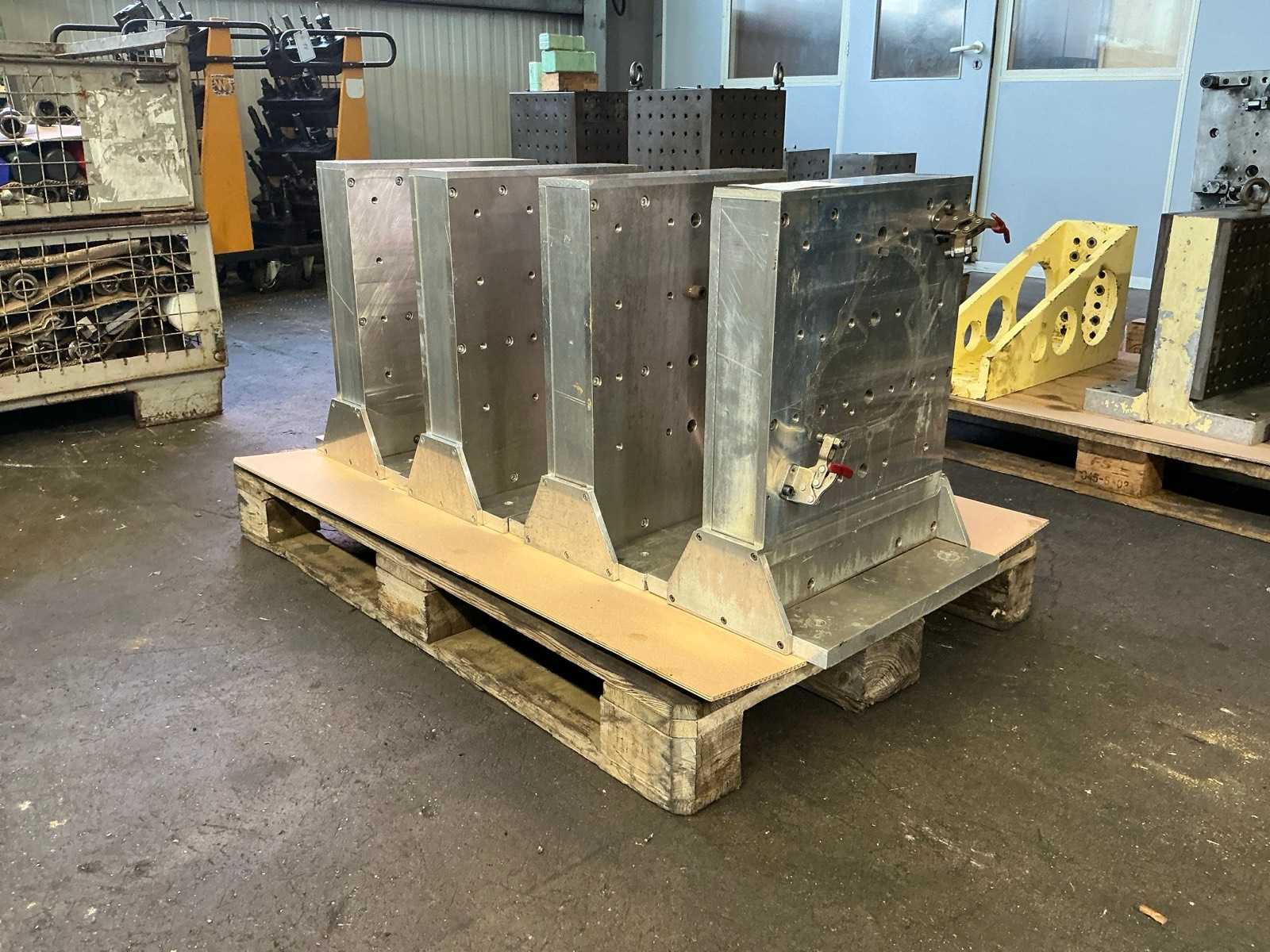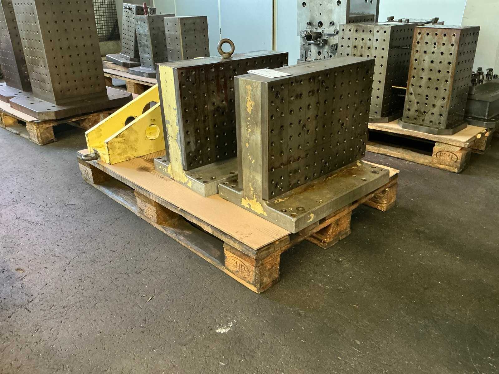 2 bloques de tensión: Placa base: 370mmx370mm Espaciado de la rejilla 40mm Superficie de sujeción 300mmx450mm Ancho de sujeción 300mmx300mm Hilo M12 2 bloques de tensión: Placa base 280mmx280mm Espaciado de la rejilla 40mm Superficie de sujeción 220mmx450mm Ancho de sujeción 220mmx220mm Hilo M12 1 placa de cuadrícula: 360mmx360mm Espaciado de la rejilla 40mm Dimensiones de base: 460mmx460mm Hilo M12 Auction-ID: A1-44728-47