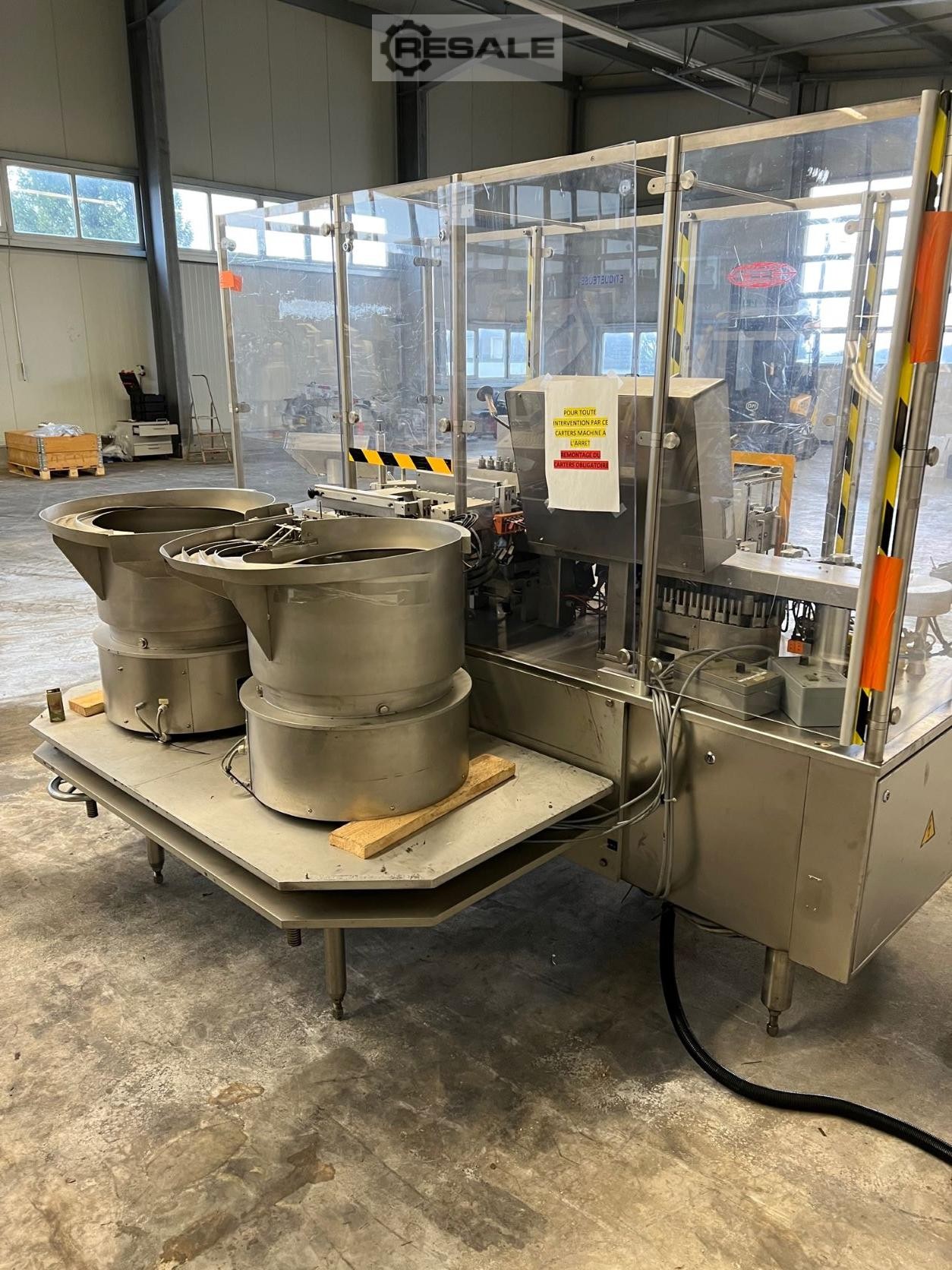 Esta máquina permite la inserción de etiquetas (etiquetas autoadhesivas), así como varillas de pistón en jeringuillas desechables.