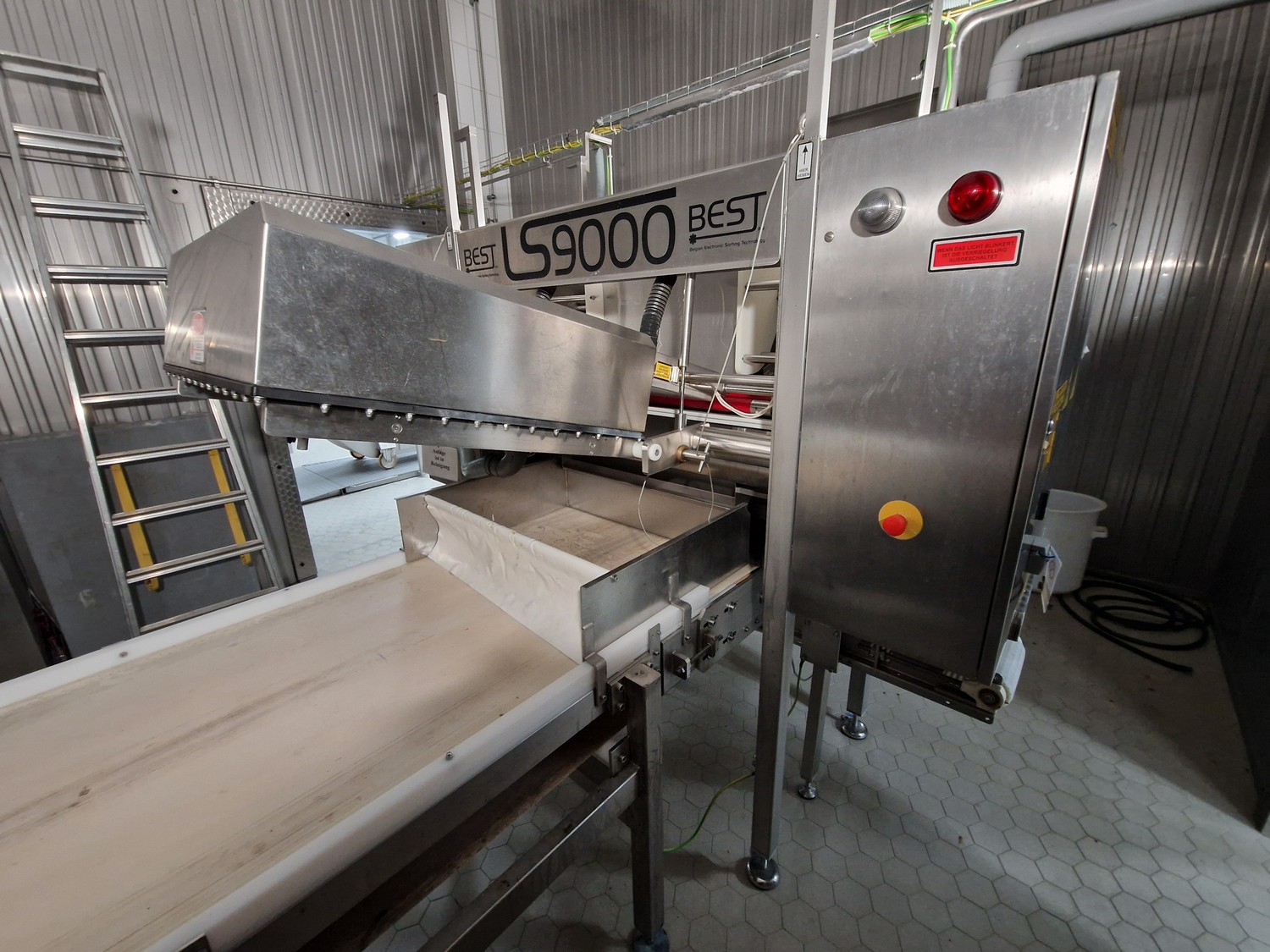Máquina de clasificación óptica BEST n.v., tipo: LS9000, número de serie: LS 257, año de construcción: 2003/10, 400 V, 3 Ph, 50/60 Hz, 2,5 KVAm aire: 200 m³/h a 6 bar por minuto, máximo 10 bar, agua: 100 litros por hora a 1 bar por minuto, máximo: 3 bar, con canalón vibratorio de entrada, ancho de canalón: 610 mm, dimensiones totales: 3550 mm x 2600 mm x 2360 mm. Incluyendo enfriador de agua M.T.A. SRL, tipo: TAE 020, número de serie: 2200022525, año de construcción: 2003, 400 V, 3 Ph, 50 Hz, refrigerante: R407C, 2.000 kg, dimensiones: 540 mm x 1100 mm x 1150 mm.