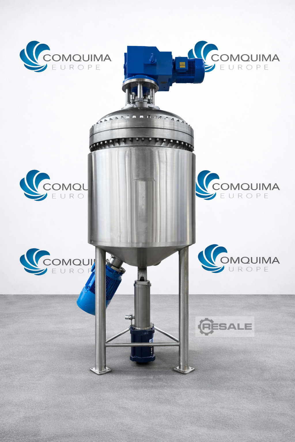 Recipiente de proceso Briggs of Burton sin usar, aproximadamente de 1,200 litros, en acero inoxidable 316/316L. La unidad mide aproximadamente 1,200 mm de diámetro x 870 mm de lado recto. La unidad cuenta con tapa abovedada atornillada y fondo hemisférico soldado. Presión de diseño interna clasificada para 10 bar/vacío total en un rango de -20 a 210 °C. Chaqueta externa de acero inoxidable 304/304L, clasificada para presión de diseño de 10 bar/vacío total en un rango de -20 a 210 °C. La unidad tiene agitador tipo compuerta de entrada superior en acero inoxidable 316/316L equipado con raspadores de pared de PTFE, accionado por motor/caja de engranajes de 11 kW. La unidad incluye emulsificador Silverson modelo BE600 de entrada inferior en acero inoxidable 316/316L, accionado por motor de 22 kW. La unidad está montada sobre patas de acero inoxidable 304/304L.
