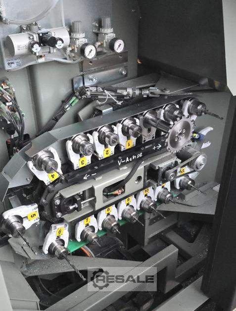 Cambiador de herramientas con 16 posiciones estándar de herramienta, además de la hoja de la sierra y la cabeza angular