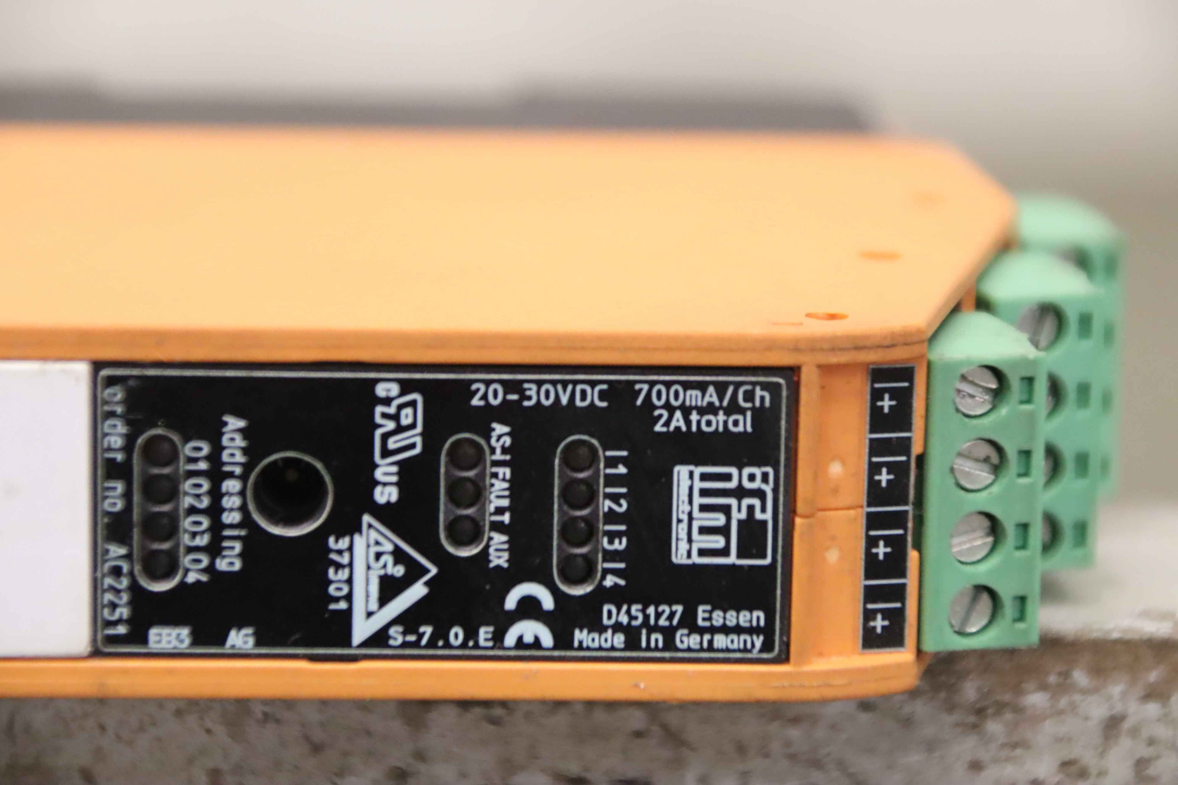 Profibus single module, Profibus single module, for PLC control, fieldbus, PROFIBUS, Profibus-DP, AS-i Gateway-Manufacturer: ifm electronic, AS-Interface control cabinet module-Type: AC2251-Voltage: 20 -30 V DC / 700 mA see photo type plate-Number: 20x module available-Price per piece-Dimension: ...