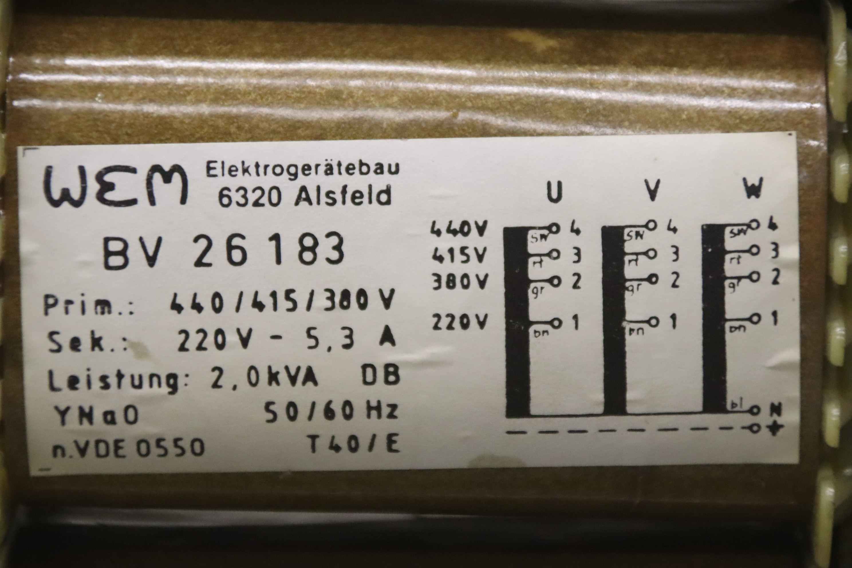 Tipo de máquina: Transformer 2.0 kVA