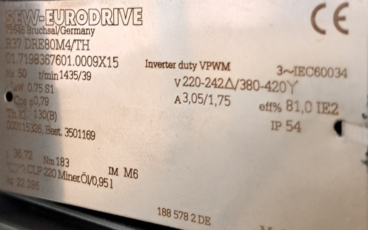 Drive: SEW gear motor, R37