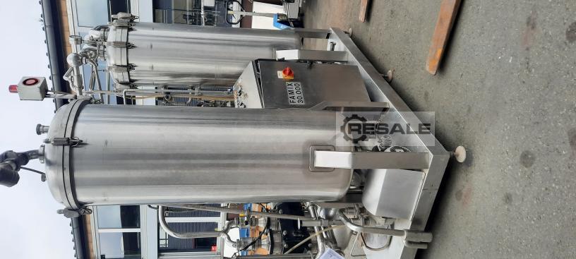 LÍNEA PARA EL LLENADO DE ACEITE COMESTIBLE EN 1,0 LTR. BOTELLAS DE PET Capacidad: 6,000 hph x 1.0 L Conisting de: Soplador KOSME KSB 3000 – 2001. – 2 piezas x 3,900 fph Caja para preformas con transporte al soplador Compresor para moldes de refrigeración MTA S.R.L. - 2000 Transportador de aire de botella KOSME – 1999 Acero inoxidable AISI 304 Armario de control eléctrico con PLC Filtros de aire incorporados Transporta botellas del soplador al llenador Relleno y taponador – ICS-Eslovenia - 1995 – 6.000 L/h Etiquetadora ICS – 1995 – etiquetas de papel, cola fría Cintas transportadoras ICS – 1995 Empacadora en cajas de transporte 3x5 botellas – ICS – 1995 Enfardadora SMIPACK-packer en botellas de aluminio 2x5 – 2013 Enfardadora de palets ZLATOROG-Eslovenia – 1999 Compresores de baja y alta presión KAESER – 2000 Secador frigorífico Ha ...