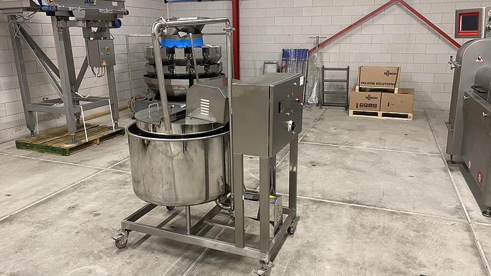 Tipo: Qbo120-3-316-SGPV Número de serie: 2304023123006 Año de construcción: 2012 Cuenco: 120 litros Velocidad: 0 - 2000 RPM Altura de entrada: 1450 mm Calefacción: vapor, 160 kg/h Aire comprimido: 6-8 bar, 20 l/min Potencia: 3 x 400V, 50Hz, 22kW Dimensiones: 1800 x 1750 x 1800 mm Peso: 900 kg Con mezcla automática, vacío, doble camisa e inyección de vapor Tapa automática y basculante
