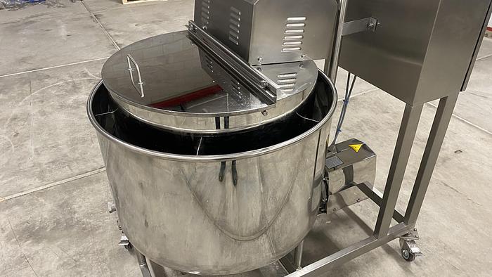 Tipo: ProMix 1000 Número de serie: E011140705022 Año de construcción: 2020 Mezclador: 1000 litros Capacidad: máx. 650 kg Altura de entrada: 1900 mm Refrigeración: Nitrógeno, LN2, 48 kg/min Boquillas: 4 uds. Escape: 3600 m³/h Aire comprimido: 7 -12 Bar, 20 Nl/min. Potencia: 3 x 400V, 50Hz, 10kW Dimensiones: 2850 x 2100 x 2450 mm Peso: 2150 kg Con doble salida para contenedores de 200L Incluye plataforma de inspección GEA / Kittner ColumnLoader Tipo: 300S Número de serie: E011270605550 Año de construcción: 2020 Capacidad: máx. 300 kg Velocidad de elevación: 5 m/min Altura de inclinación: 1650 - 2250 mm Potencia: 3 x 400 V, 50 Hz, 0,75 kW Dimensiones: 1000 x 1320 x 3100 mm Peso: 350 kg