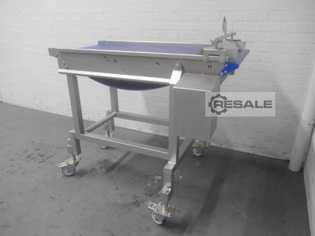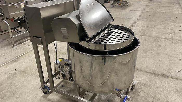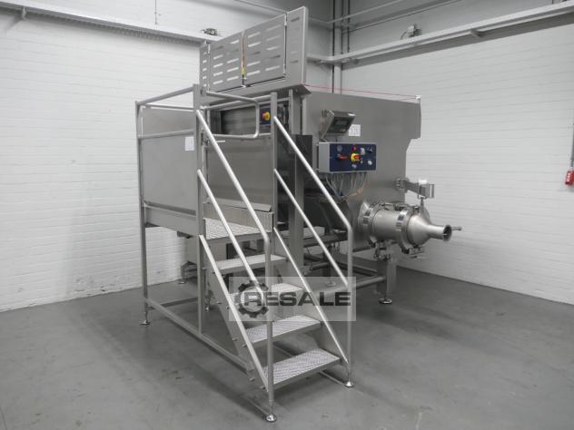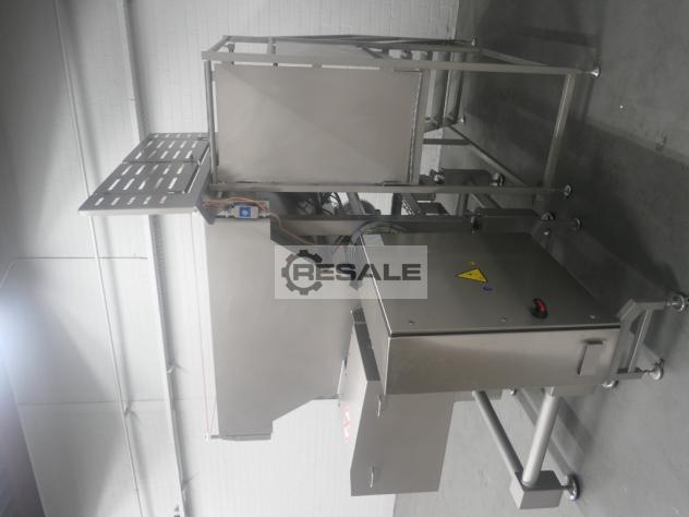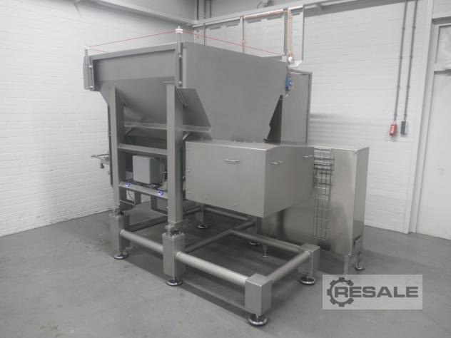 Tipo: FGM 64 SW Número de serie: 9103-2003 Año de construcción: 2003 Agujas: 2 x 64 agujas de 4 mm Anchura de la correa: 550 mm, viga móvil Altura de carrera: 150 mm Aire comprimido: 6 bar Alimentación: 3 x 400V, 50Hz, 22A Dimensiones: 2350 x 950 x 2450 mm Peso: 900 kg Con filtro de proteínas FM80 Para productos con y sin hueso Filtro rotativo Fomaco Tipo: PFS 5/225 RCS Número de serie: 8955-2002 Año de construcción: 2002 Dimensiones: 1900 x 700 x 1000 mm Peso: 100 kg