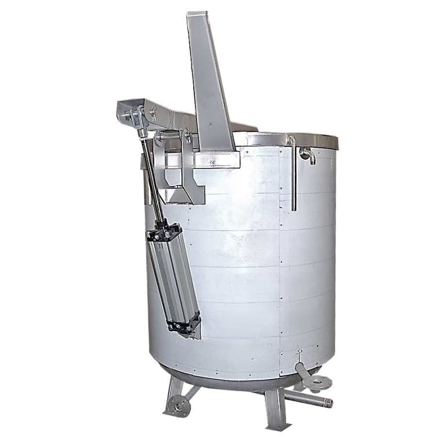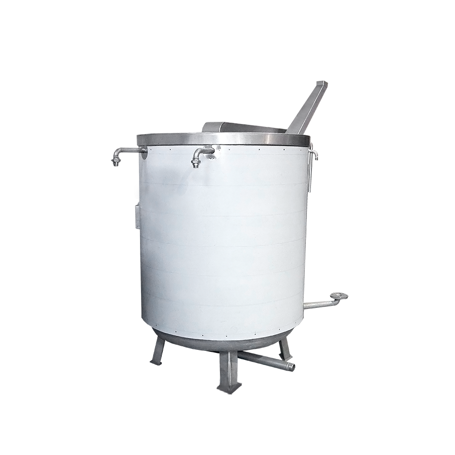 COCINA VERTICAL CON APERTURA NEUMÁTICA, EN AGUA O SALMUERA, TIPO MECALSA: MC CDA-2 Descripción técnica: Material: acero inoxidable Aisi-304 Calefacción: Vapor/agua caliente en la bobina interna Apertura: Neumático Fuente de alimentación: ¿220 V? 50 Hz Capacidad: 2 cestas Diámetro interno: ? 1227 mm Diámetro exterior: ? 1284 mm Altura: 1300 mm