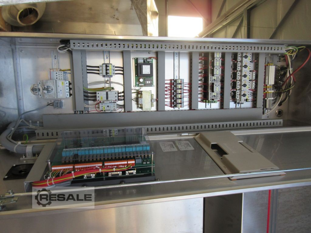 Modelo 6000/600 Año: 1997 Condición: Usada Número de serie: 855 Número de serie: 3327G Ancho de la cinta: 645 mm Descripción: Con lavadora de correa continua y control neumático de correa Longitud de freído: 6000 mm Calefacción eléctrica: 270 kW Aire comprimido: 6 - 10 Bar Potencia: 3 x 400V, 50Hz, 272kW Dimensiones: 8000 x 1400 x 2500 mm