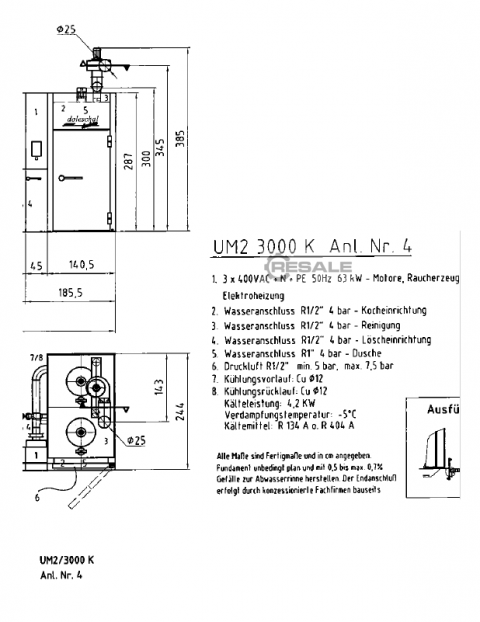 Usado-reacondicionado Depósito de 750 litros Diseño de tanque intercambiable Datos técnicos: H x W x D: 3000x1200x2300mm 3,3 kW de potencia eléctrica 400 V, 3 F, 50 Hz Peso: 760 kg