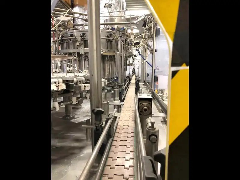 Krones Flat Water Filling Monoblock 2004 KRONES TRIBLOC con CIP y CTA y HEUFT BOTTLE INSPECTOR. Tipo de producto: Agua sin gas, zumos de fruta no carbonatados. Marca de máquina de enjuagar: KRONES Modelo: Variojet 2,160-54-126 Cabezas de enjuague: 54 Batalla: 126 Año: 2004/2005 Máquina de llenado Marca: KRONES Modelo: SENSOMETIC VP-G-PET 4,320-108-126 Válvulas de llenado: 108 Paso: 126 mm Producto: agua no carbonatada Tamaños: USADOS PARA 2,0 litros. También puede llenar 0,5, 1,0 L y 1,5 Lt. Capacidad: 30000 b/h Tamaño efectivo: 2,0 L Cuello PET: 30/26 Altura máxima posible del contenedor: 350,00 mm
