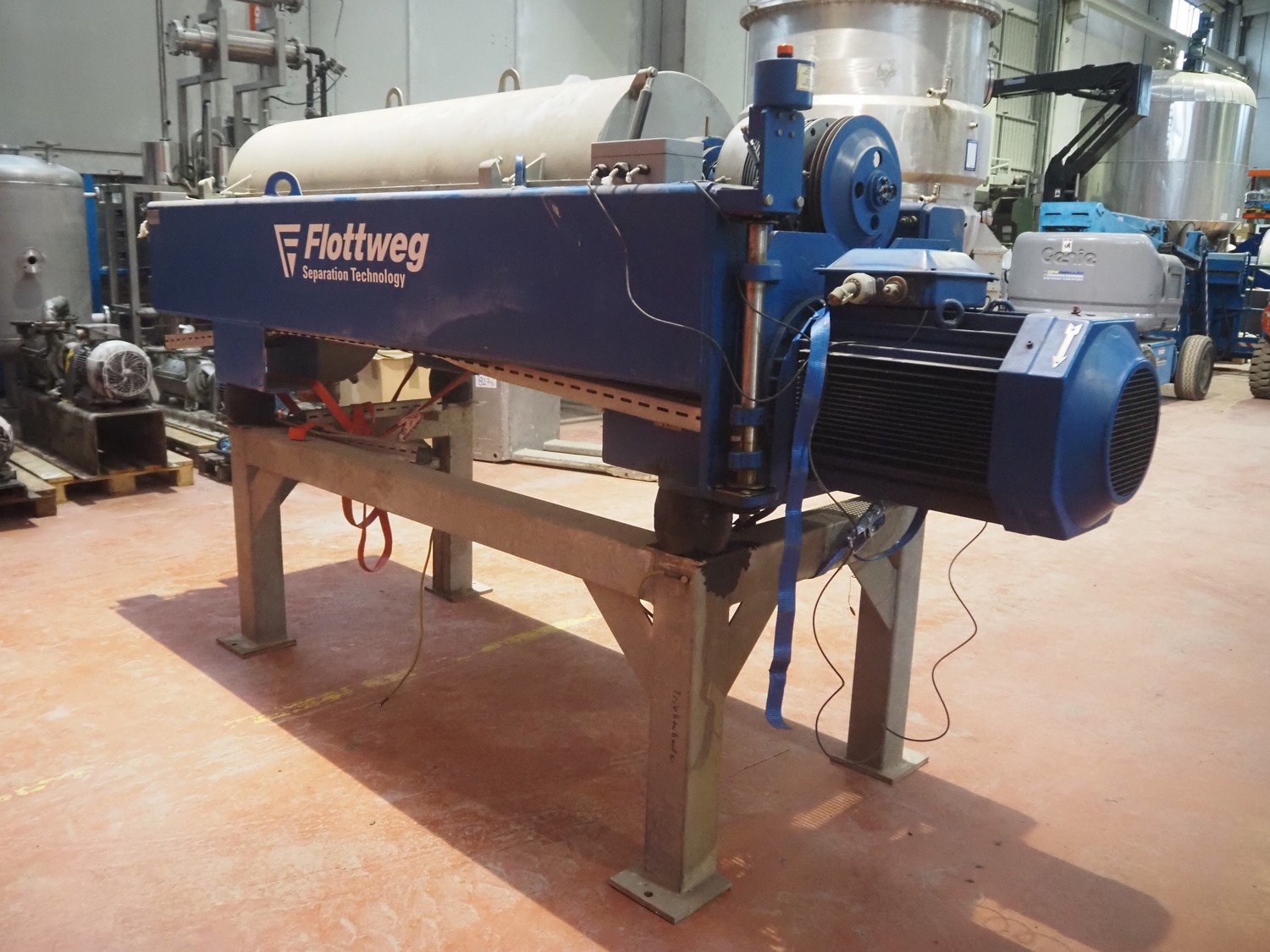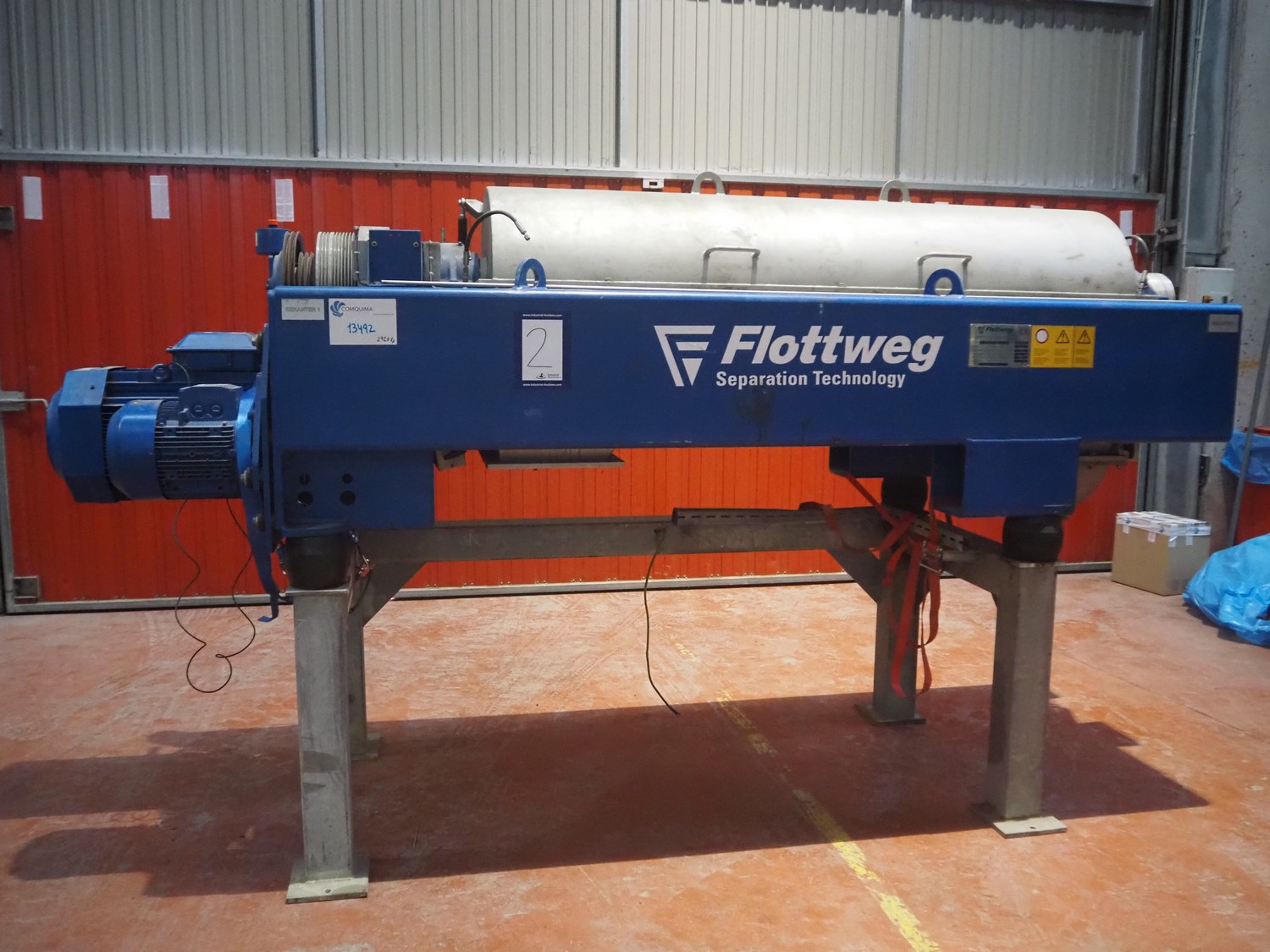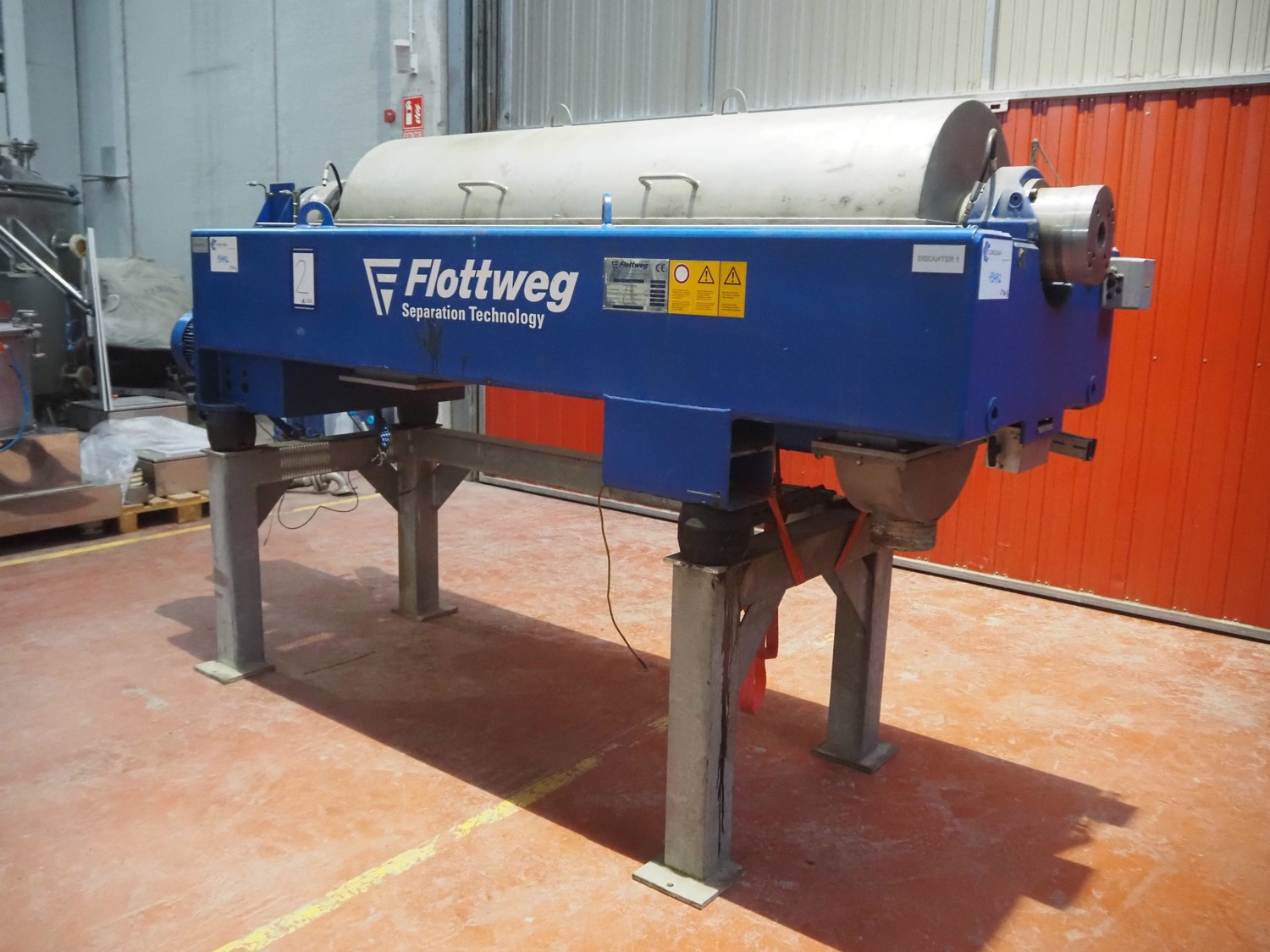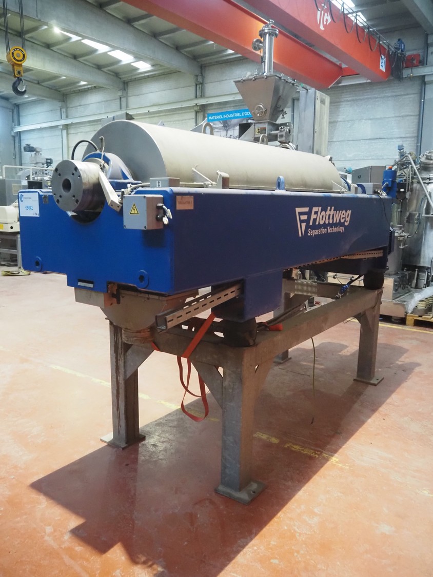 Decantador de Tecnología de Separación Flottweg, tipo: DECANTER Z4E-4/454, número: 012.333.09, año de construcción: 2004, velocidad máxima: 4200 rpm, densidad máxima: 1,4 kg/dm³, temperatura máxima del producto: 0/100ÂC, peso: 2920 kg, dimensiones: 3400 mm x 1000 mm x 1900 mm. Sin armario de interruptores.