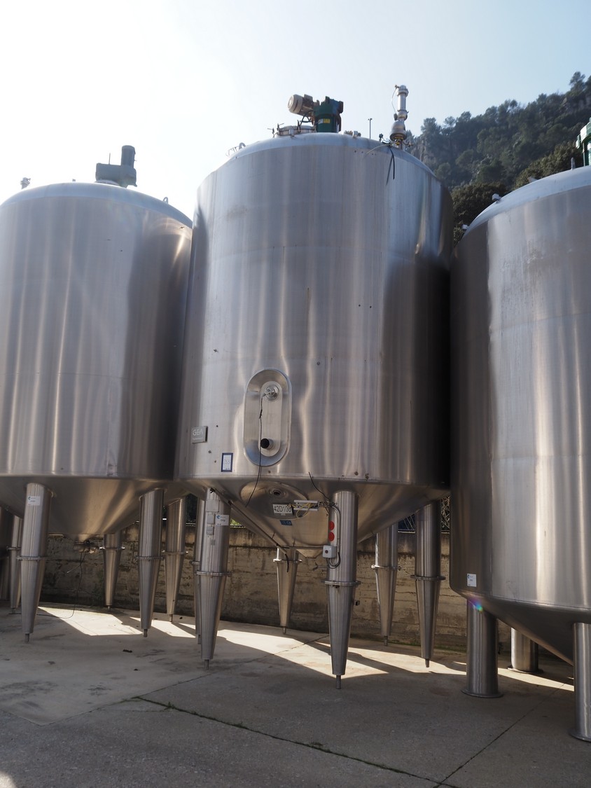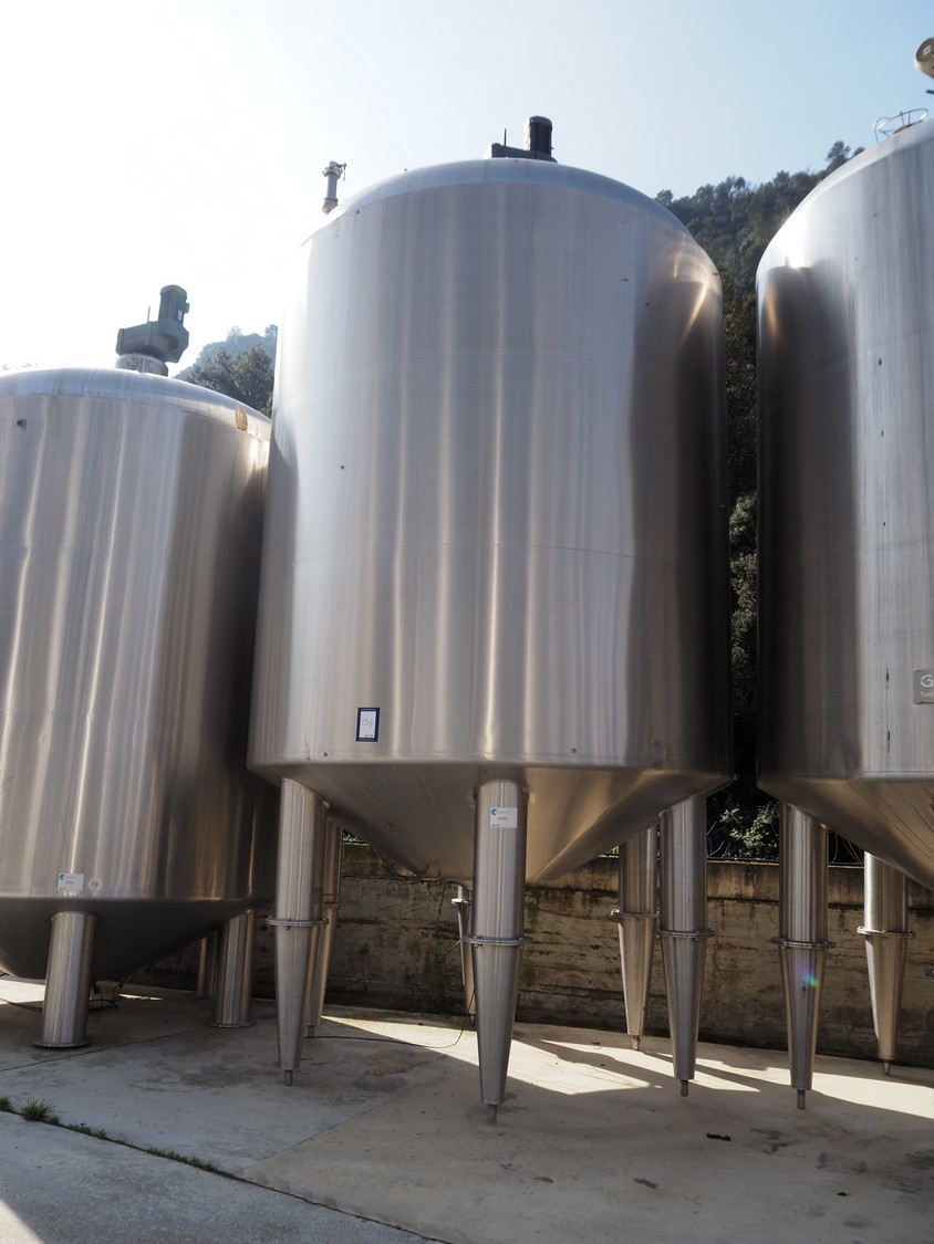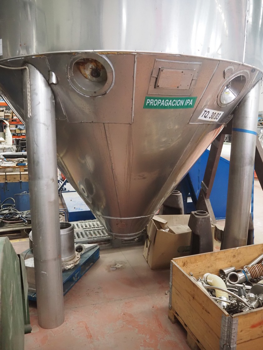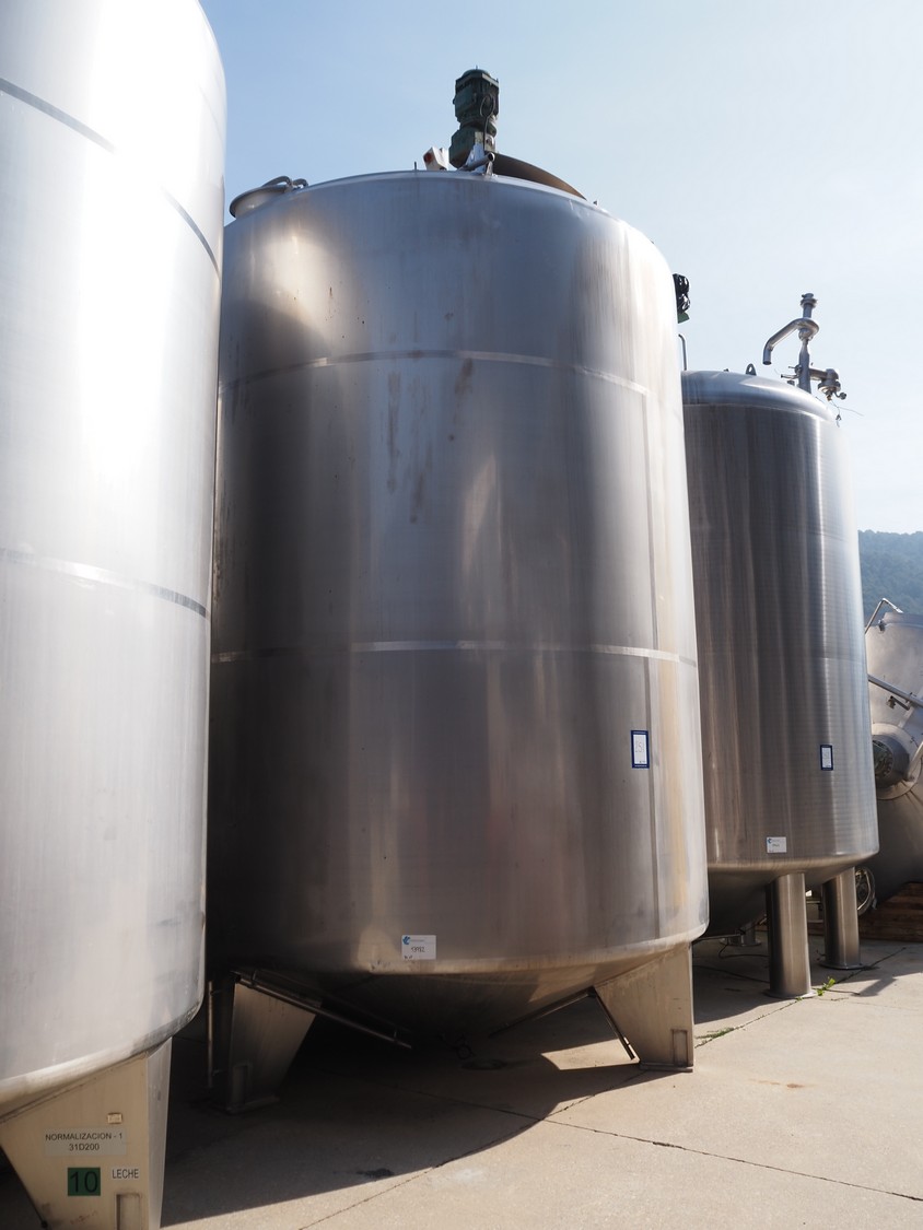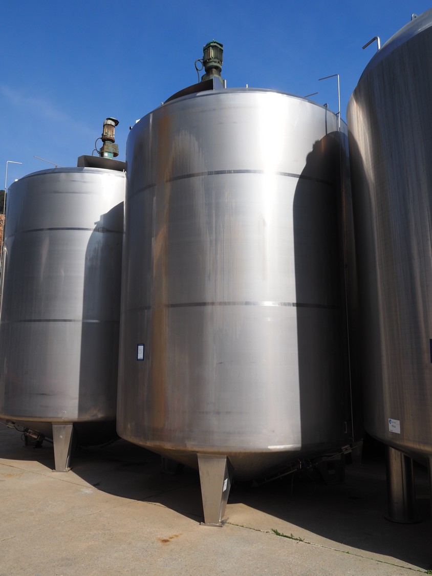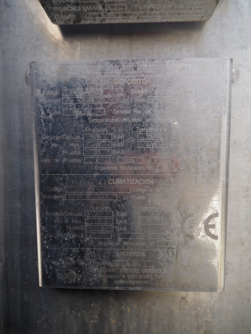 Pierre Guerin s/s tanque con doble camisa y agitador, tipo: PROCESO, capacidad: 30.000 litros, dimensiones interiores: 3200 mm x 3400 mm, dimensiones totales: 3400 mm x 6500 mm.