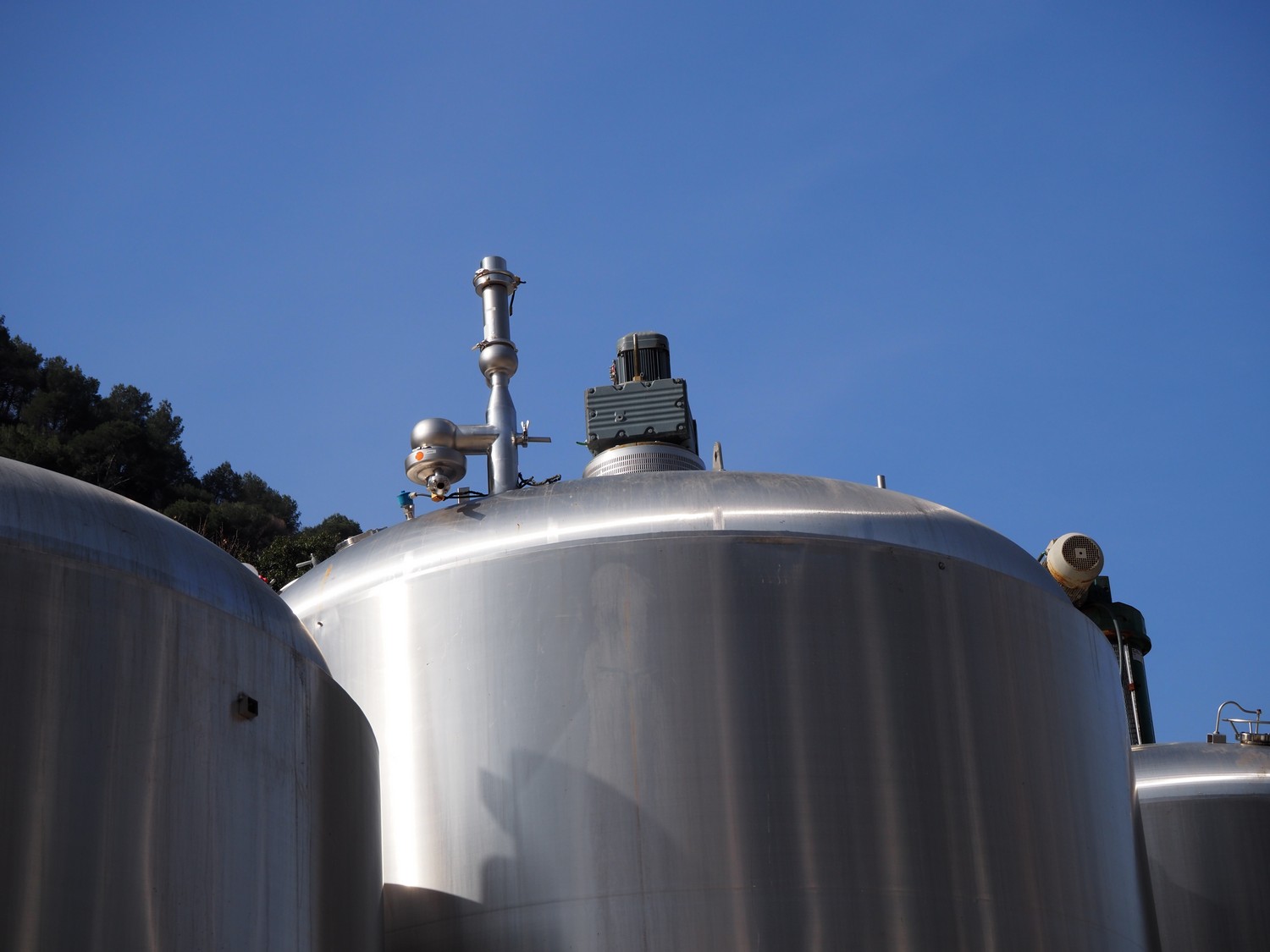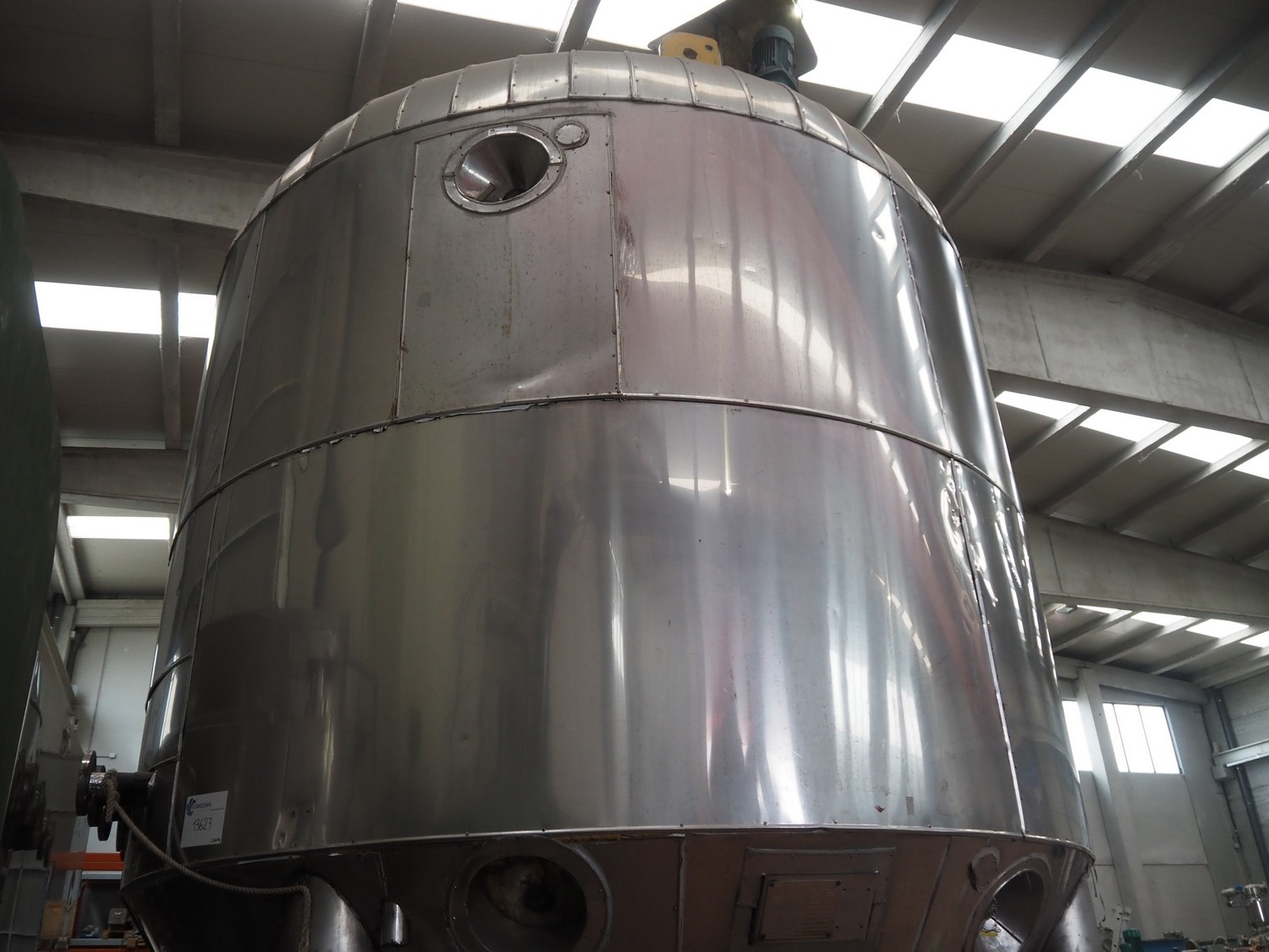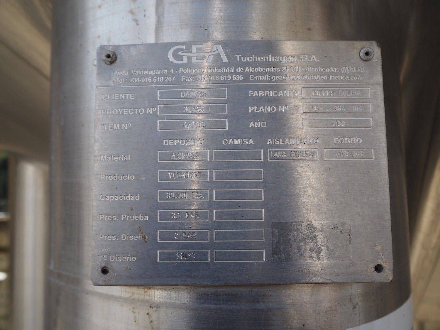 Tanque GEA s/s con doble camisa y agitador, año de construcción: 1998, capacidad: 30.000 litros, dimensiones interiores: 3200 mm x 3400 mm, dimensiones totales: 3400 mm x 6500 mm.