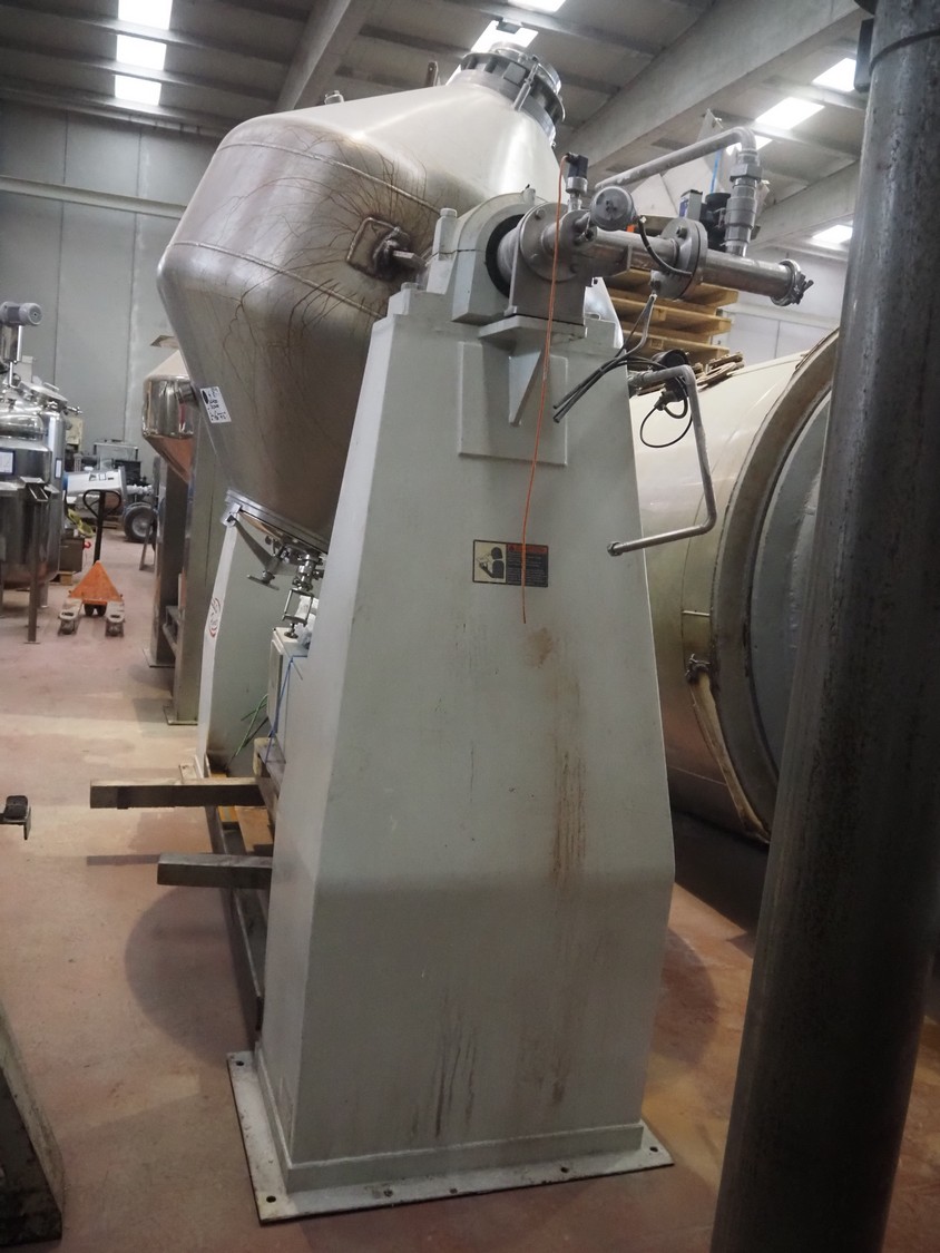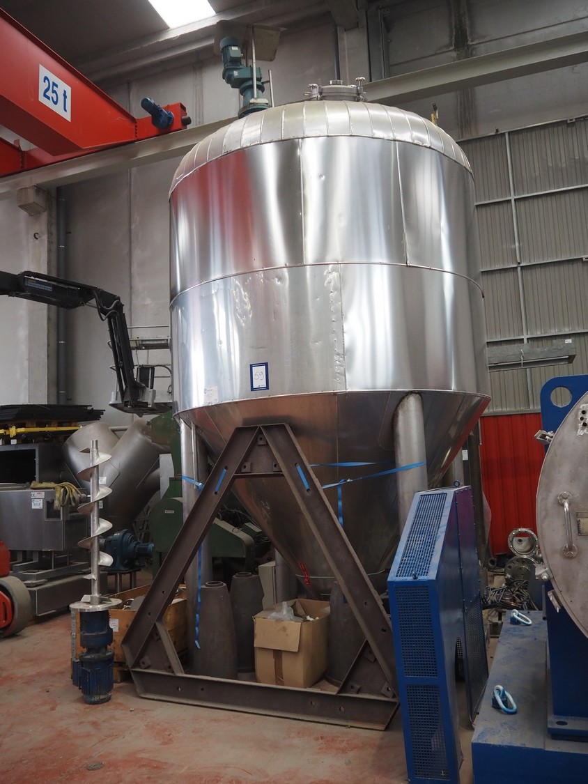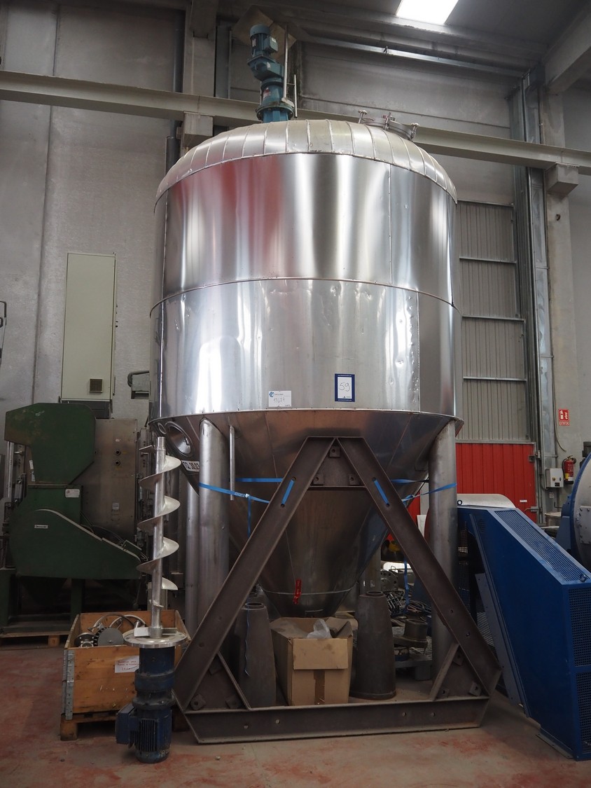 Secador Nautamix adecuado para teñir polvos, gránulos, pastas y lodos, número de máquina: M.19791, año de construcción: 1979, volumen: 1905 litros, volumen de la camisa: 111 litros, temperatura de trabajo: 130 ÂC, depósito de diámetro máximo: 1500 mm, depósito de diámetro mínimo: 280 mm, dimensiones totales: 1700 mm x 1700 mm x 3000 mm.
