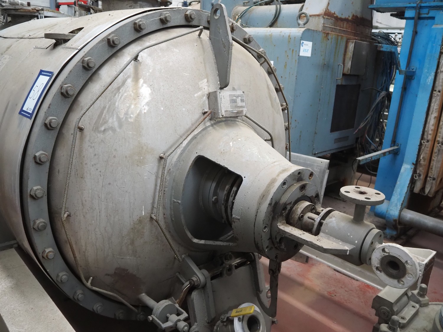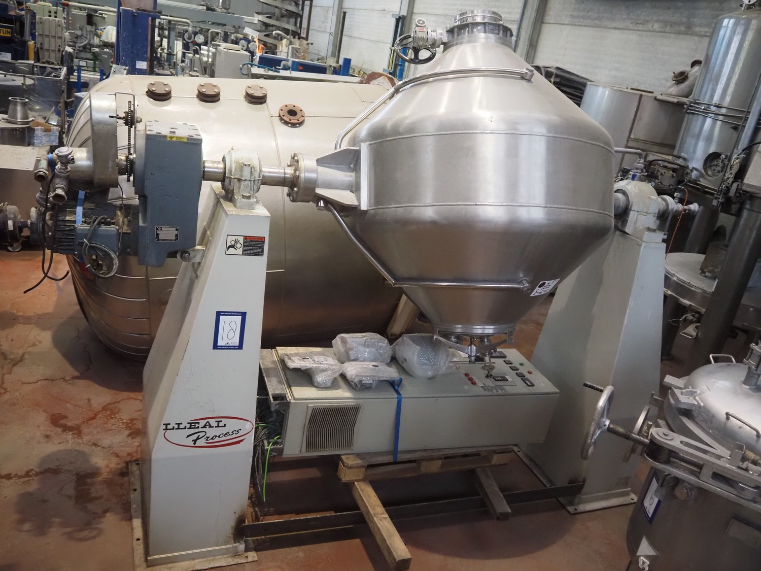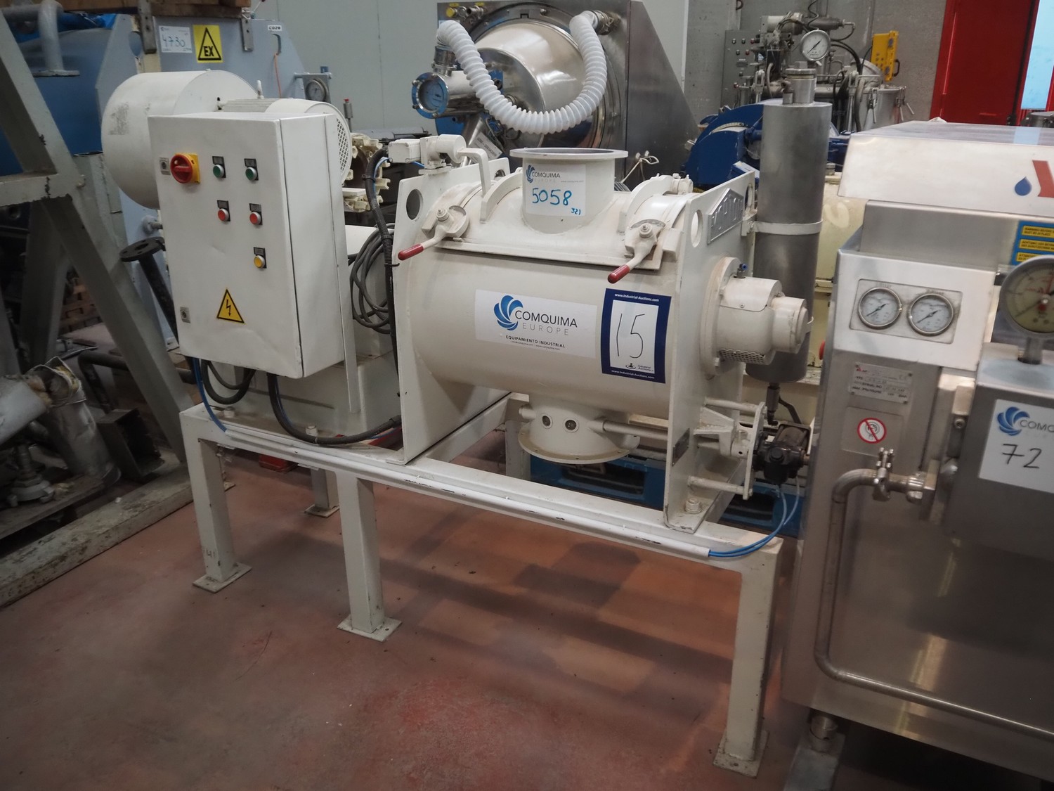 Secador Nautamix adecuado para teñir polvos, gránulos, pastas y lodos, número de máquina: M.19791, año de construcción: 1979, volumen: 1905 litros, volumen de la camisa: 111 litros, temperatura de trabajo: 130 ÂC, depósito de diámetro máximo: 1500 mm, depósito de diámetro mínimo: 280 mm, dimensiones totales: 1700 mm x 1700 mm x 3000 mm.