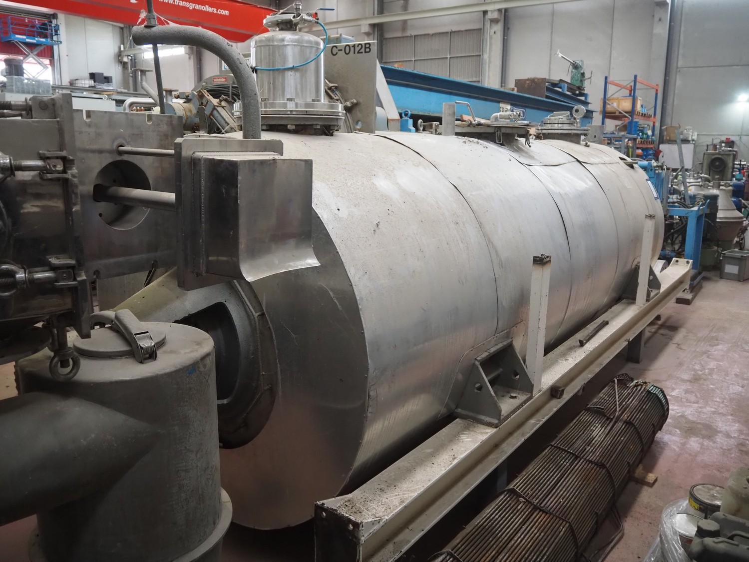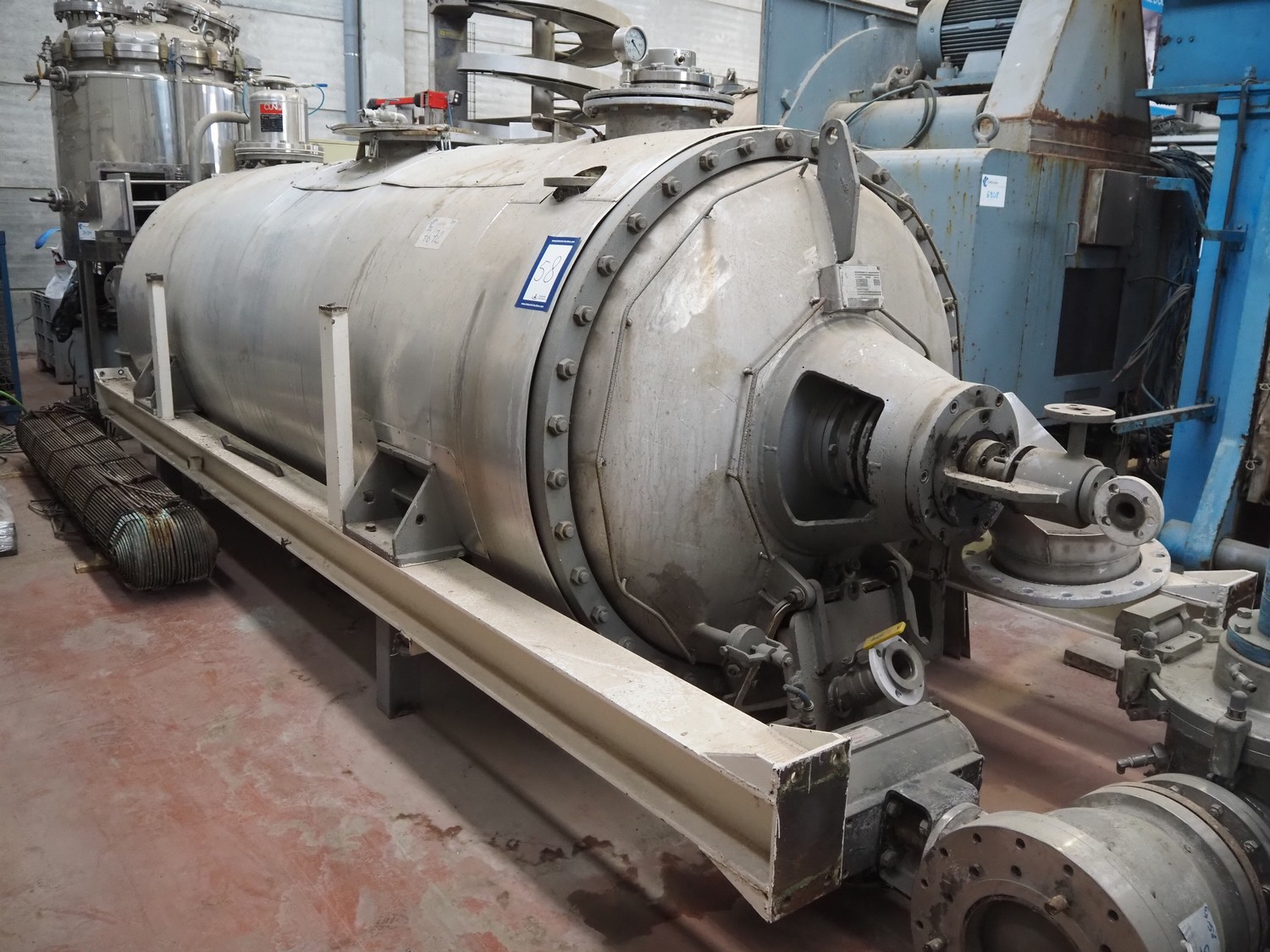 F.M.C. Oissel secador de cuchillas de vacío, tipo: ACM, número: 1181 A, año de construcción: 1972, volumen: 6000 litros, volumen de la camisa: 1200 litros, temperatura de trabajo: 130ÂC, dimensiones: 1900 mm x 6000 mm x 1900 mm.