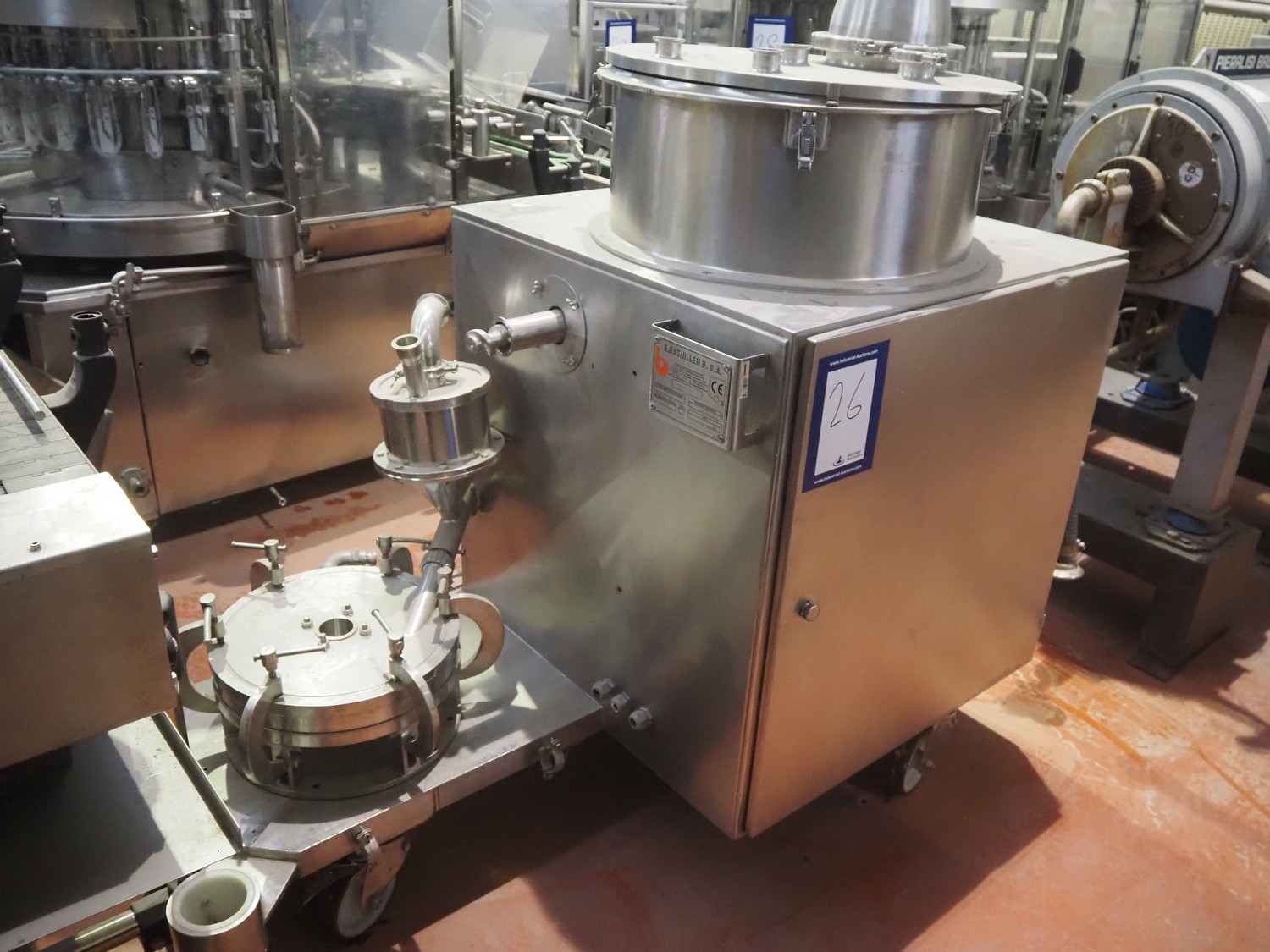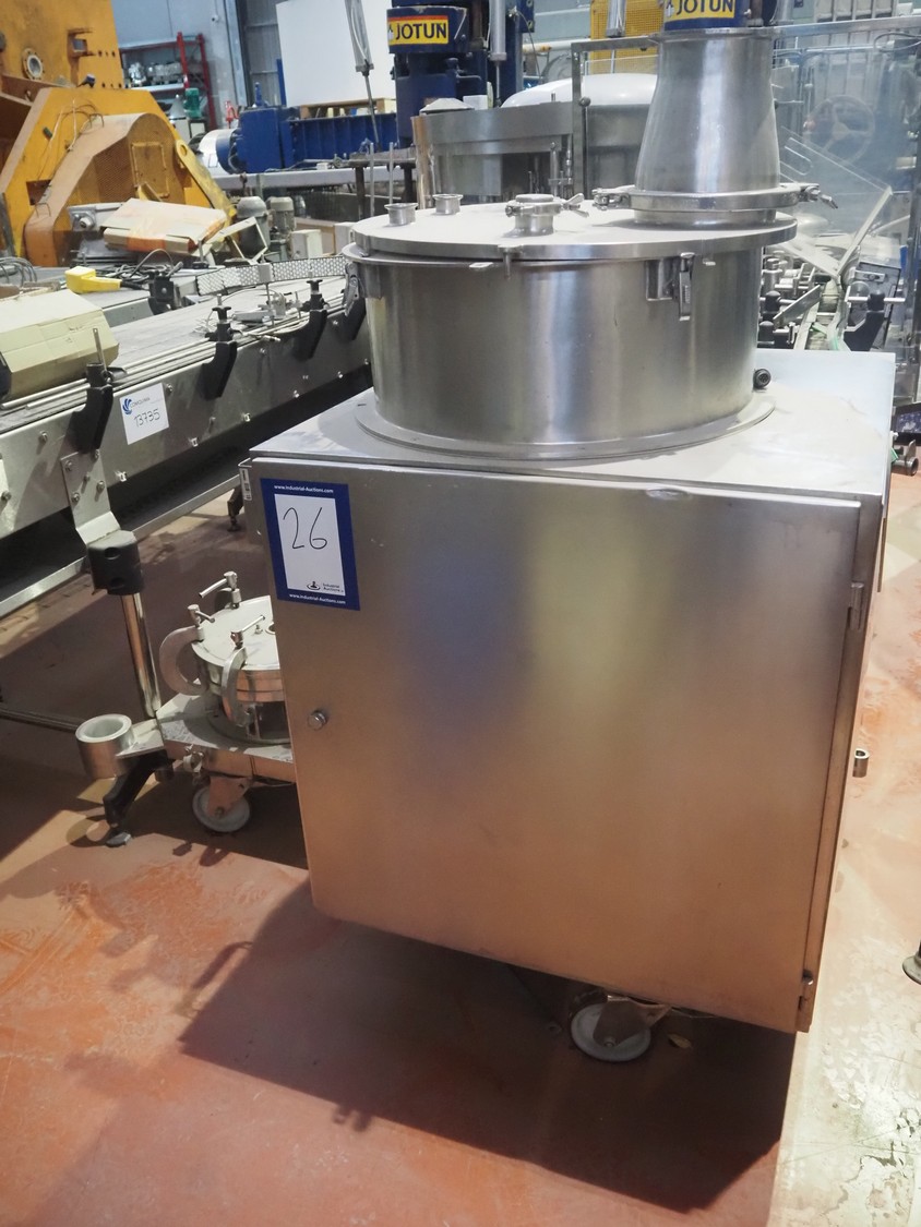 Colador móvil Glatt, modelo: TR200, número: 96965/1, dimensiones: 1300 mm x 1000 mm x 1700 mm.