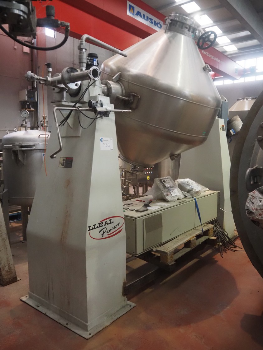 Secador de vacío Lleal S.A., modelo: SBC-1400, año de construcción: 2014, volumen: 1400 litros, dimensiones: 3900 mm x 1150 mm x 3000 mm, instalación de vacío con bomba de anillo líquido Robuschi, bomba de vacío de pistón rotativo Pedro Gil, intercambiador de calor Alfa Laval, depósito de condensador, dimensiones: 2000 mm x 1400 mm x 2000 mm.