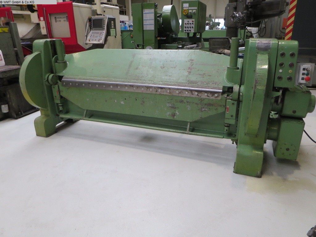 sheet width: 3140 mmplate thickness: 6.5 mm STthickness at Niro-steel: 4.0 mm VAbending angle max.: 0 - 135 °daylight opening: 100 mmback stop - adjustable: max. 800 mmControl: M 15 S total power requirement: 7.5 kWweight of the machine ca.: 6350 kgdimensions of the machine ca.: 4350 x 2250 x 1900 mm current new price approx. 60.000 euros special price on requestDescription :- robust folding machine- high precision for wide bending processes- increased rigidity in design- hydraulic drive- with rack and pinion for better control and accuracy- compared to normal hydraulic systems Easy adjustment of material thickness Adjustable hydraulic pressure to adjust the thickness of the material This prevents damage to the surface of the materials- Smallest return bend 25 mmEquipment:- Program control M 15 S with LED display for bending angle adjustment- Manual backgauge 0 - 800 mm- Manual lower be ...