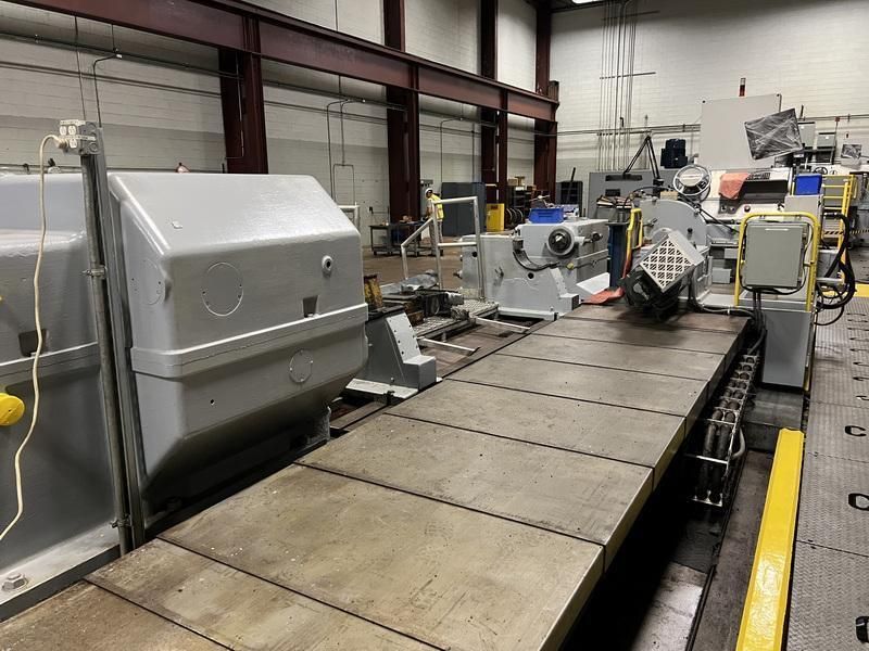 grinding diameter: 250 - 1650 mmgrinding length: 1000 - 8000 mmswing diameter: mmcentre height: 1000 mmcentre distance: 8000 mmgrinding wheel size: 760/900 x 100 x 305 mmControl: Allen Bradley PLC workpiece weight max.: 75000 kgspindle drive: 66 kWgrinding wheel turining speeds: 375 - 1125 U/minfeeds of grinding head: 35 - 2600 mm/mingrinding feed: 0,0025 - 0,05 mm/Utotal power requirement: - kWweight of the machine ca.: - tRough Grinding, Finish, Fine & Superfinish GrindingRe-Conditioning Work Rolls and Back-Up RollsHard & Soft Rubber RollsMachining of: Cylindrical, Convex and Concave Rolls of Various Materials2018 Electrical UpgradeAllen Bradley PowerFlex Digital Drives 755Allen Bradley 1609 SPO Ethernet Network CardAllen Bradley PLC- Continuous In-Feed Mechanism of the Grinding Wheel for Compensation of Wheel Ware- Dynamic Wheel Balancing- Electronic Vibration Indicator- Wheel Mount- ...
