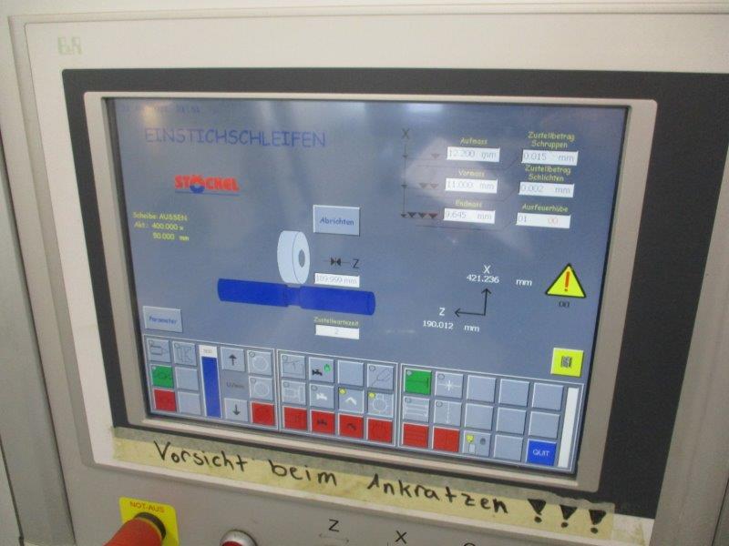 grinding diameter: 300 mmgrinding length: 1000 mmcentre height: 150 mmtotal power requirement: 6 kWweight of the machine ca.: 5 tdimensions of the machine ca.: 5 x 3 x 2,2 mNo. 4959Universal cylindrical grinding machineSTÖCKEL RSU 100 NC-TWorking area: approx. Ø 300 x 1000Drive: 4/1 kWElectronic handwheelInternal grinding deviceCoolant device with magnetic separatordocumentationExternal grinding spindleWheel Ø 400 x 50 / 250 x 30 mm4 kW / max. 1400 mi-1Internal grinding spindle 1 kW / max. 1400 min-1Swivel range: - Table : -6° / +10° - Grinding headstock 180° - Workpiece headstock -90°Space requirement approx. 5 x 3 x 2.2 mTransport dimensions approx. 6LMWeight approx. 5.000 kgThe data for this ad was created with ModulMWS - the software solution of LogoTech oHG.