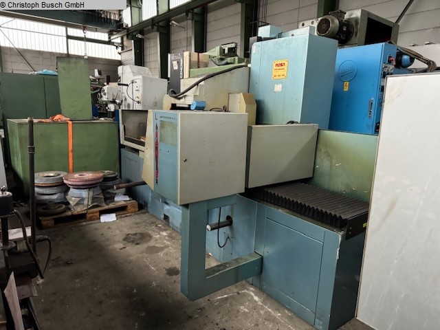 Diámetro: 50 mm, profundidad de rectificado: 80 mm, distancia entre ejes del eje del husillo y la mesa: 145 mm, soporte de la muela abrasiva: 540 mm, conicidad: Morse 4, diámetro del husillo de la pieza de trabajo: 28 mm, giro del husillo de la pieza de trabajo: 10/30, giro del husillo de rectificado: 130 mm, movimiento transversal del husillo de rectificado: 30 mm, movimiento longitudinal de la mesa: 4 mm / 80 mm, capacidad de la bomba de refrigeración: 140 l / min. Dimensiones de la máquina X/Y/Z: aprox. 2100 mm/1000 mm/1400 mm, peso: aprox. 1600 kg. Incluye accesorios y dispositivo de medición de calibración. La máquina fue revisada en 2002. Documentación disponible. Es posible la inspección in situ.