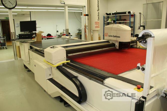 usado GERBER Cutter Z7. La máquina de corte automática GERBER Cutter Z7 fue fabricada en 2016 en China por Gerber Technology (Lectra). La máquina se utiliza en la producción de ropa y de todos los productos de costura. Puede cortar tanto tejidos de una sola capa como de varias capas con un grosor máximo de 7,2 cm (tras compresión). El corte se realiza con una hoja robusta y verticalmente oscilante, que garantiza la máxima precisión de corte y repetibilidad de forma, independientemente del tipo de material. El avanzado sistema Knife Intelligence "Plus" controla el movimiento del cuchillo cambiando su ángulo, trayectoria de corte y aceleración en tiempo real para asegurar un corte preciso de piezas repetibles en todas las capas. Los trayectos de corte se optimizan aún más gracias al sistema SMARTbite, que ajusta automáticamente la velocidad de avance del cuchillo según la alt ...