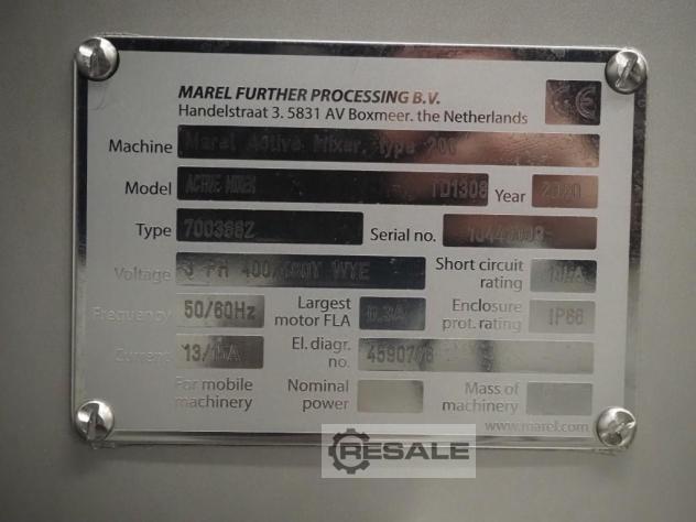Modelo: Mezclador Activo 200 Año: 2020 Condición: Usada Número de serie: 10446009 Número de stock: 3302 Mezclador: 200 litros Mezclador semiautomático de tempura y masa con gestión programable de recetas Agua: 2 - 5 bar Potencia: 3 x 400V, 50Hz, 7kW Dimensiones: 1250 x 950 x 1800 mm Peso: 400 ...