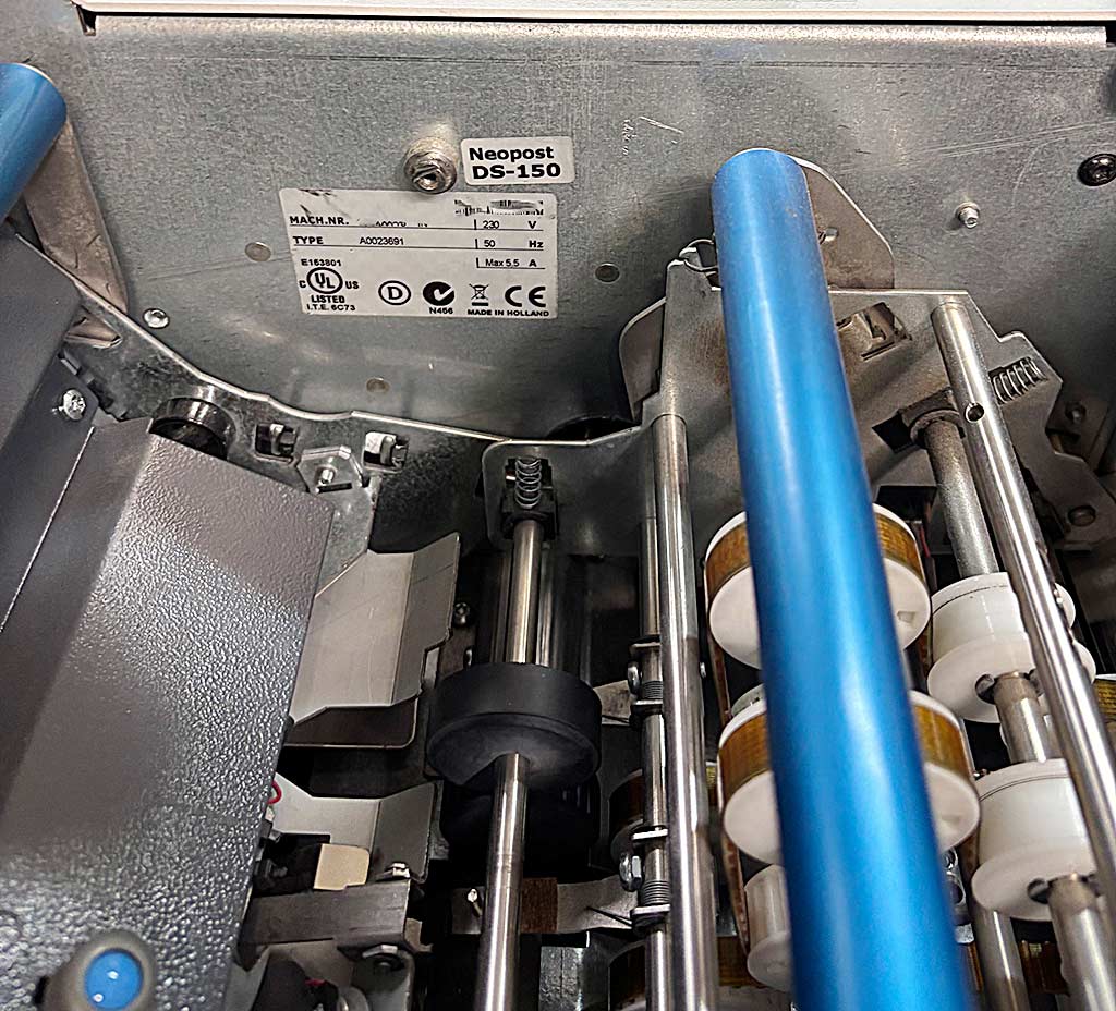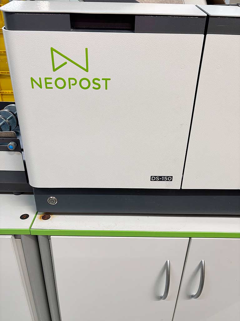 A Neopost enveloping machine is available. Inserting capacity: 4500 letters/h, inserting capacity with 2 sheets (collected): 3400 letters/h, envelope feeder capacity: 400, inserting liquid tank: 1, document feeder capacity: 500 sheets. Envelope thickness: 4mm, min. document dimensions X/Y: 76mm/140mm, max. document dimensions X/Y: 228mm/406mm, min. envelope dimensions X/Y: 89mm/152mm, max. envelope dimensions X/Y: 165mm/264mm. Fold types: Spiral fold/Z-fold/single fold/double fold/parallel fold/non-fold. Machine dimensions X/Y/Z: approx. 3600mm/550mm/600mm, weight: approx. 400kg. Documentation available. On-site inspection is possible.
