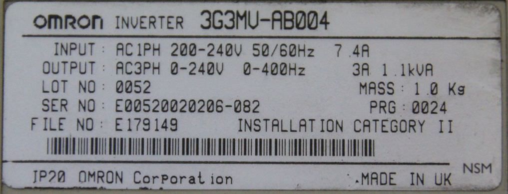 Frequency converter 0.55 kW OMRON Sysdrive 3G3MV-AB004