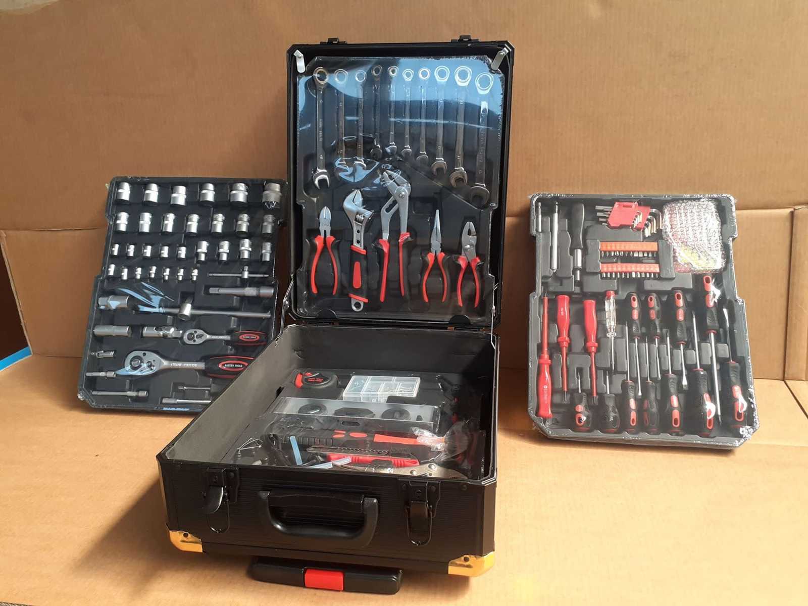 Conjunto de 10 carritos de herramientas, completos con todas las herramientas tal como en la foto, calidad de llave de cromo vanadio, \"en su estado original\" empaquetado en su embalaje original Dimensiones totales: 1500 x 1200 x 1800 mm Peso: 790 kg Auction-ID: A7-44802-195
