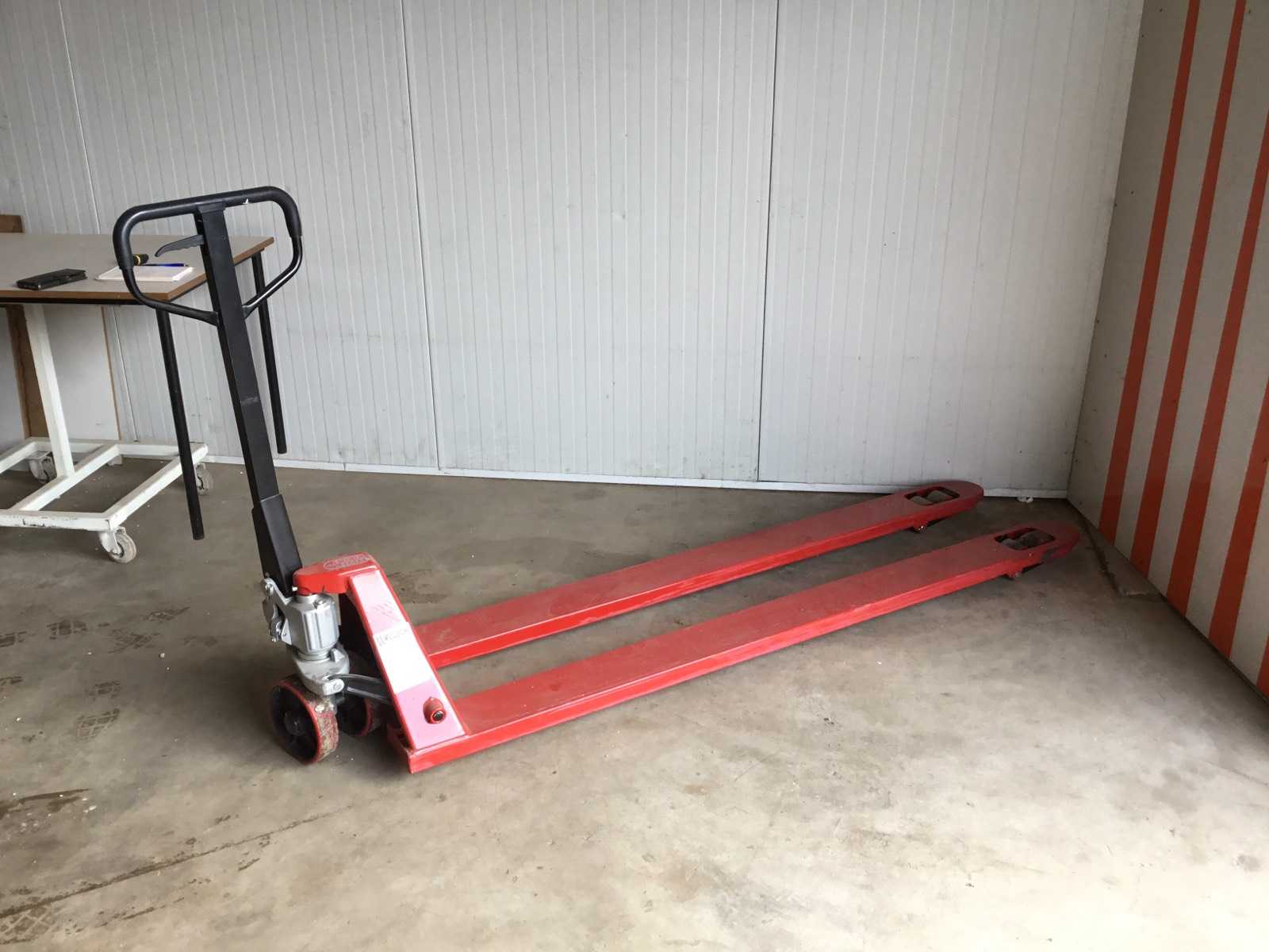Transpalet eléctrico, equipado con batería de litio y cargador rápido, baterías de 24 voltios, con tracción eléctrica y elevación. Nunca usó 0 horas en su embalaje original Dimensiones totales: 1400 x 800 x 800 mm Peso: 250 kg Auction-ID: A7-44801-38