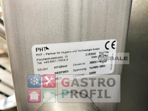 Se trata de un sistema de secado y desinfección para botas y zapatos del fabricante PHT tipo HYGIfeet M5. El sistema de secado y desinfección Hygifeet es la innovación para todos los espacios sociales. El sistema almacena los zapatos y las botas después de su uso y los desinfecta y seca al mismo tiempo. La desinfección se realiza de forma segura con ozono y, por lo tanto, no consume ningún producto químico. El secado simultáneo se realiza a través de aire caliente, lo que garantiza un tiempo de secado corto. La mezcla de ozono y aire caliente solo se libera cuando las fundas están unidas a los cabezales de las válvulas. Además, los cabezales de las válvulas tienen una forma ergonómica para una circulación de aire óptima. Las botas cálidas y secas aumentan el bienestar de sus empleados y previenen enfermedades a través de la desinfección. El dispositivo ha sido probad ...