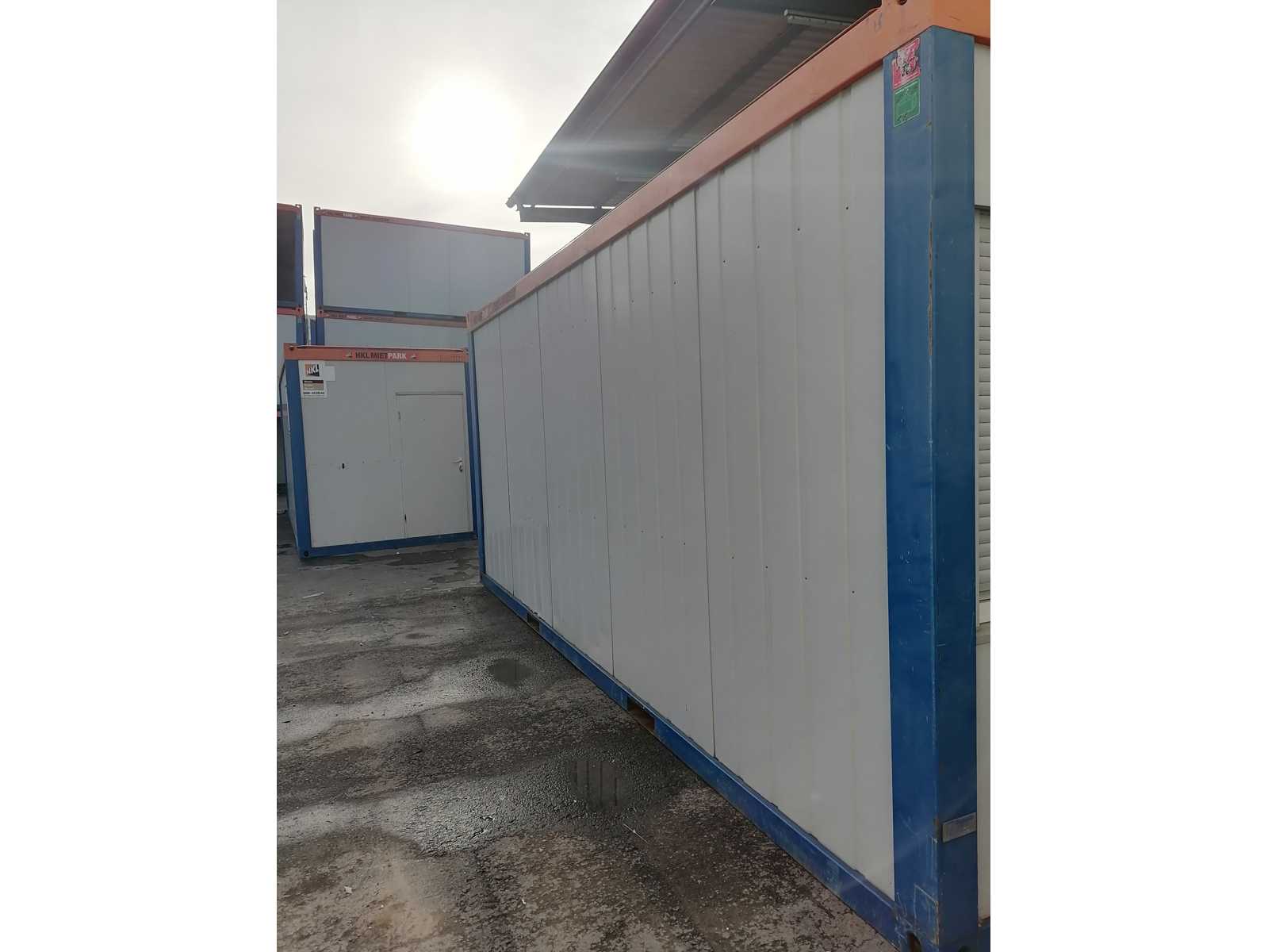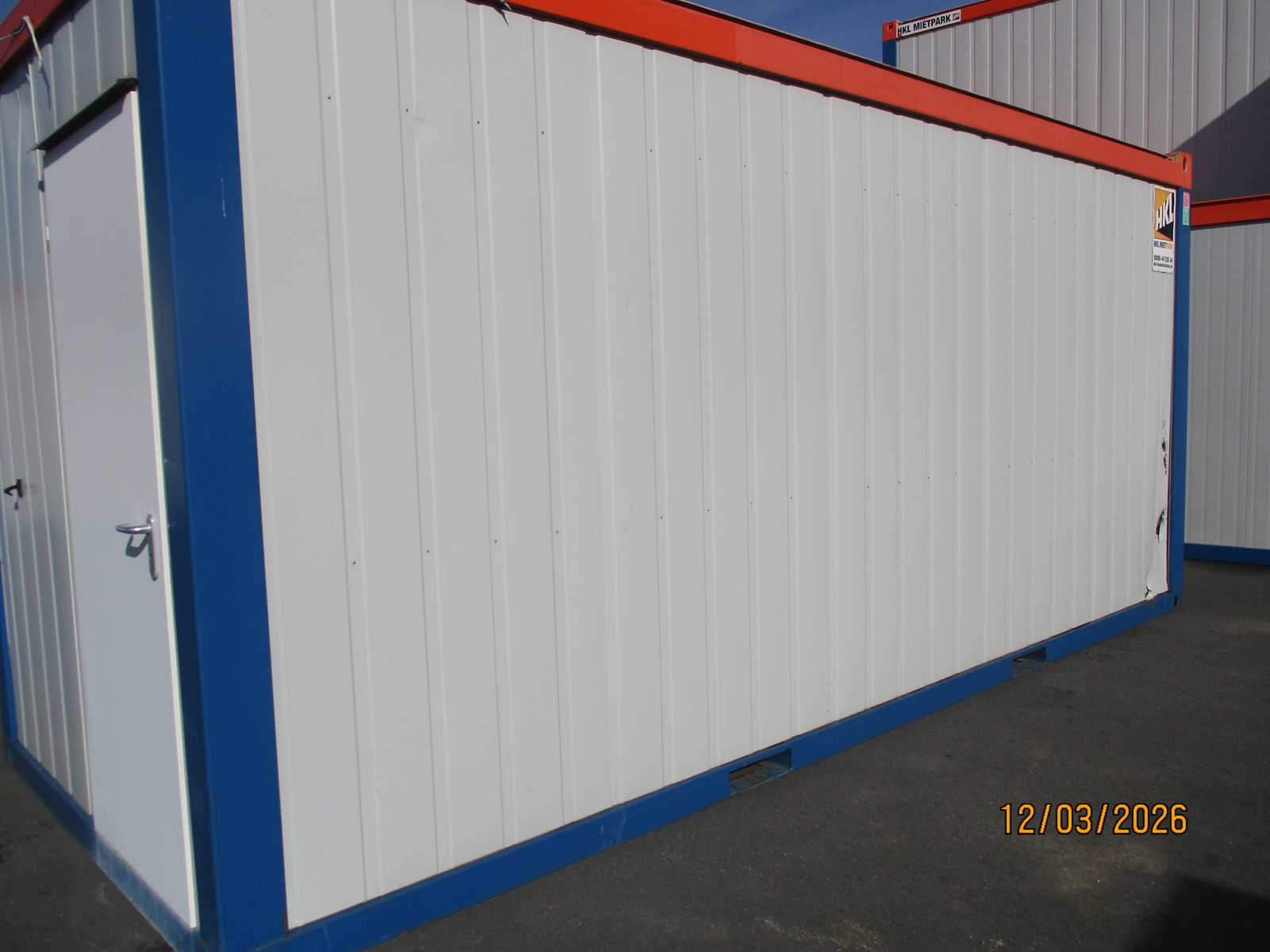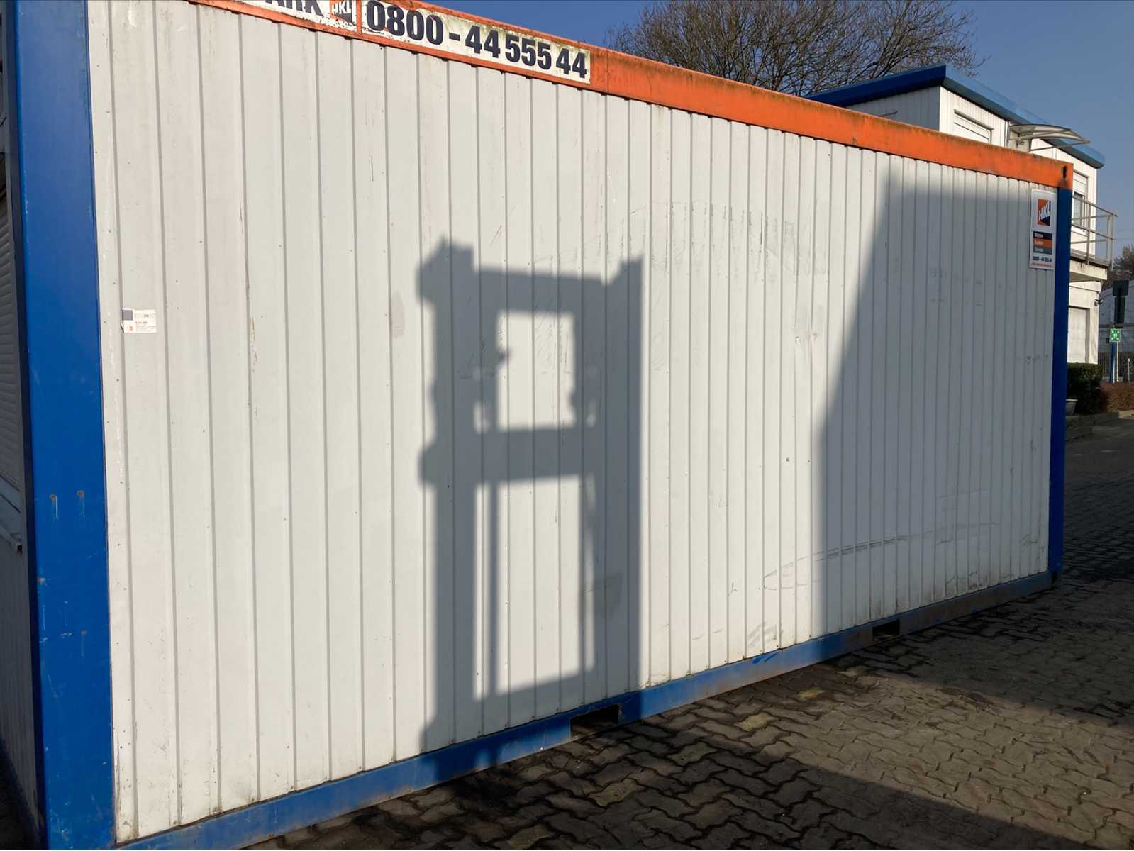 Dimensiones exteriores: 6.058 x 2.438 x 2.800 mm Marco de acero soldado con firmeza: Sí Marco: DIN-ISO Manejo: Conectable, Apilable, Grúa Bolsas para carretillas elevadoras: 900 mm Electricidad: Instalación eléctrica, luces de techo, interruptores y enchufes, enchufe exterior: CEE 32A 5P 400V, tiras de luz Auction-ID: A1-44751-7