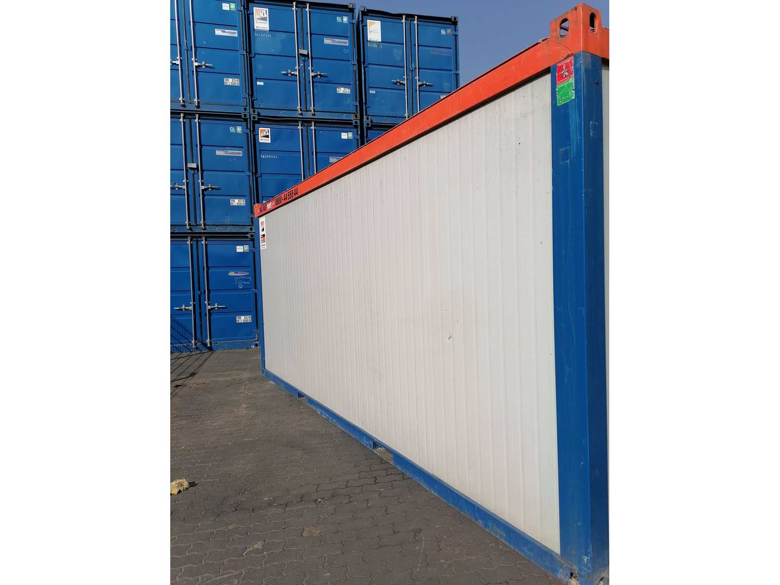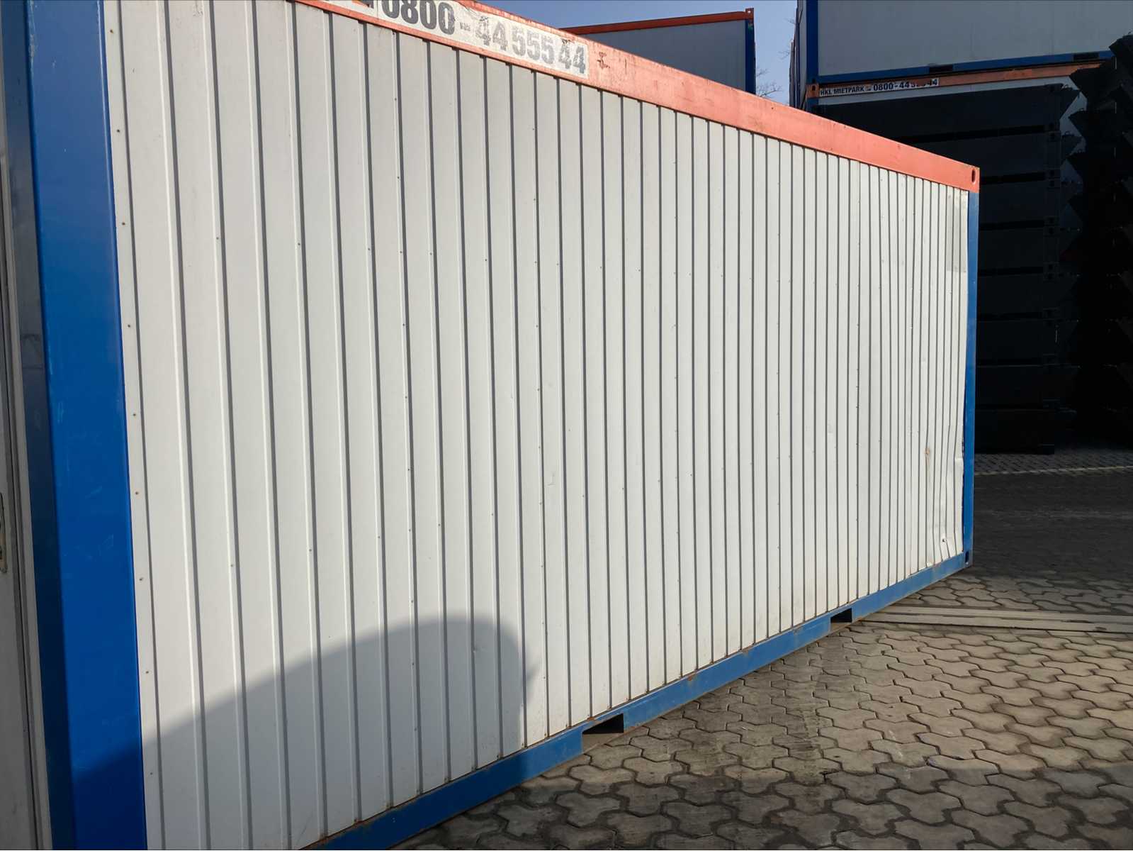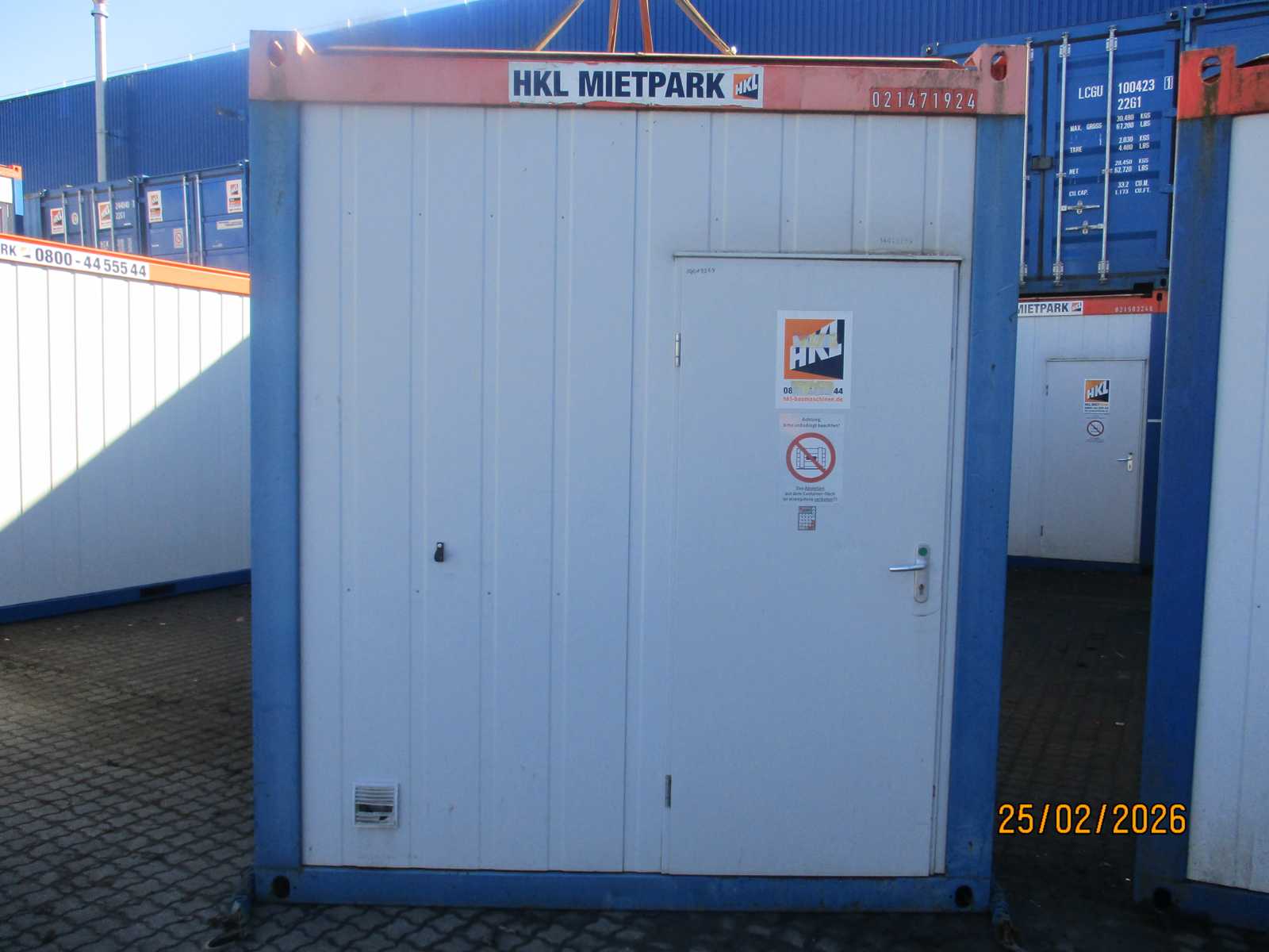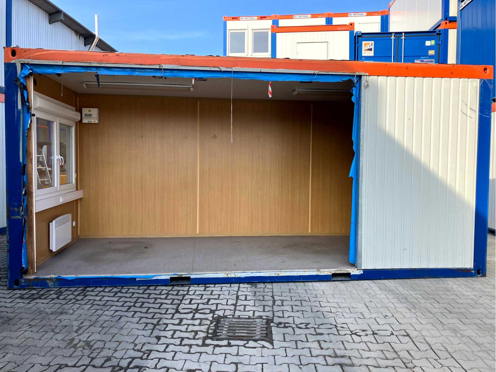 Dimensiones exteriores: 6.058 x 2.438 x 2.800 mm Marco de acero soldado con firmeza: Sí Marco: DIN-ISO Manejo: Conectable, Apilable, Grúa Bolsas para carretillas elevadoras: 900 mm Electricidad: Instalación eléctrica, luces de techo, interruptores y enchufes, enchufe exterior: CEE 32A 5P 400V, tiras de luz Auction-ID: A1-44751-7