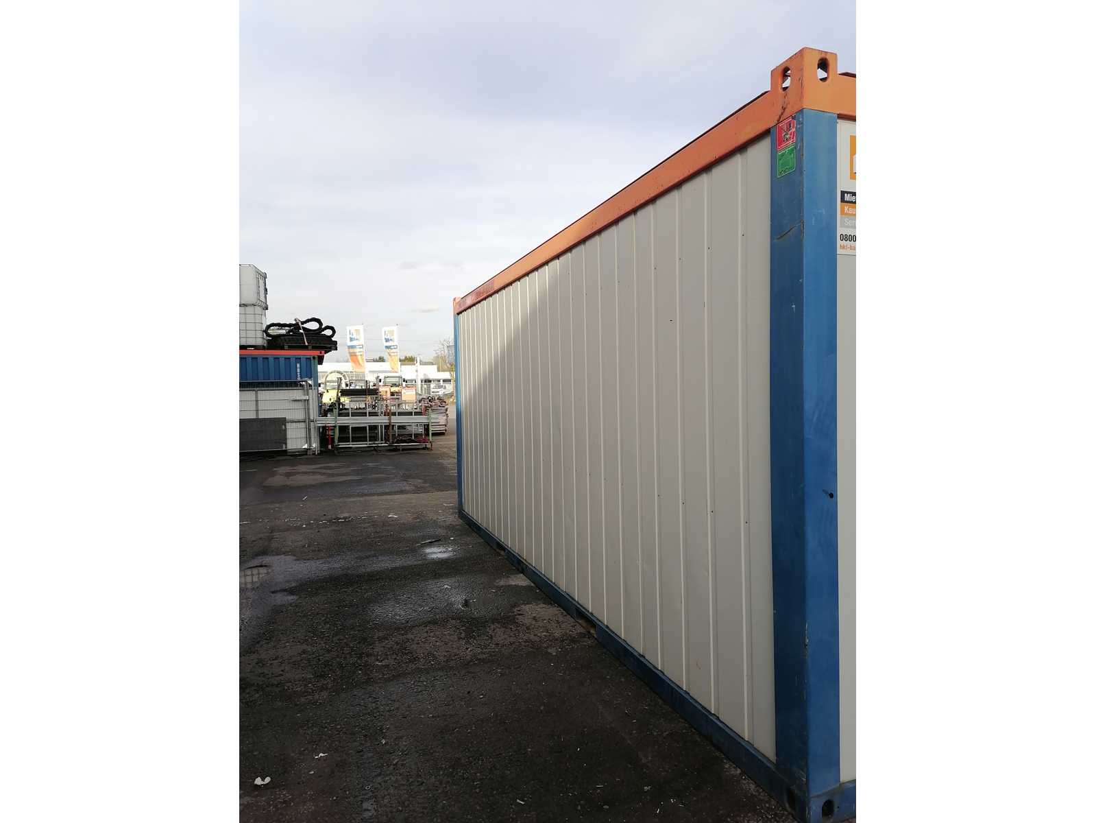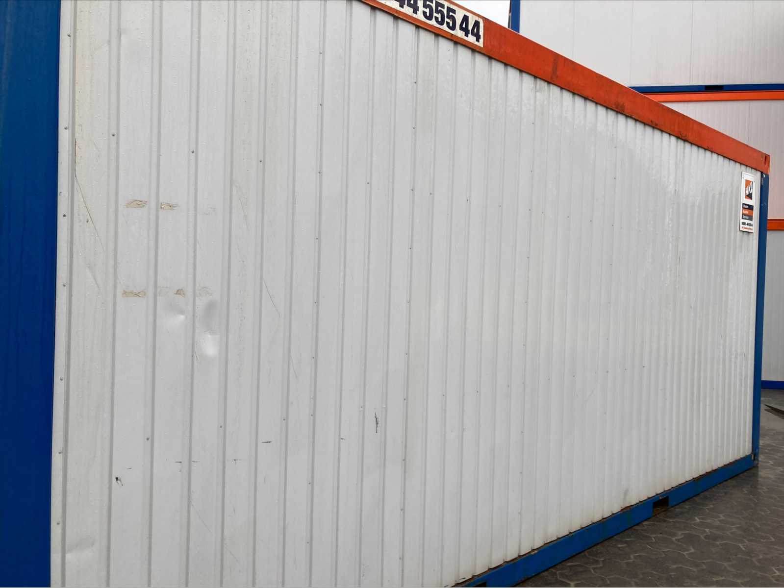 Dimensiones exteriores: 6.058 x 2.438 x 2.800 mm Marco de acero soldado con firmeza: Sí Marco: DIN-ISO Manejo: Conectable, Apilable, Grúa Bolsas para carretillas elevadoras: 900 mm Electricidad: Instalación eléctrica, luces de techo, interruptores y enchufes, enchufe exterior: CEE 32A 5P 400V, caja de fusibles, tiras de luz Auction-ID: A1-44751-4
