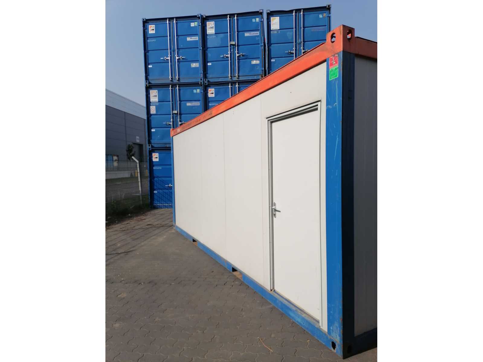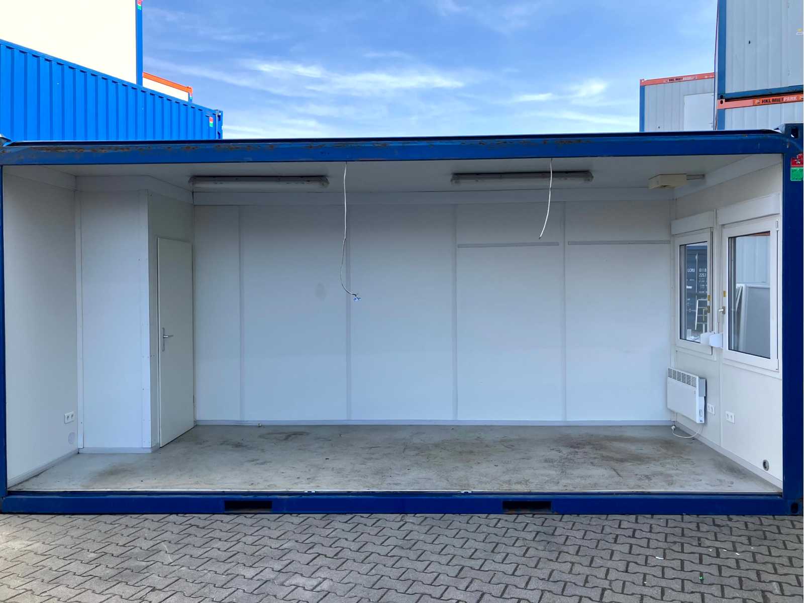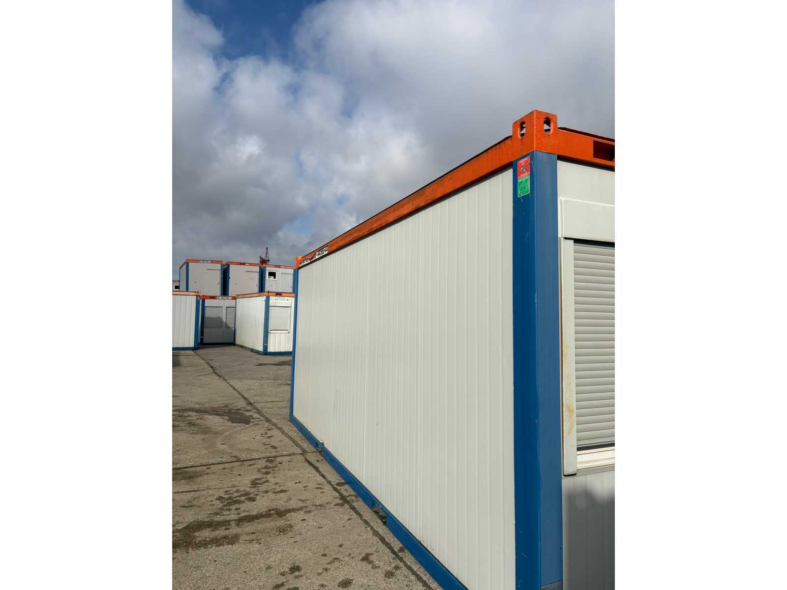 Dimensiones exteriores: 6.058 x 2.438 x 2.800 mm Marco de acero soldado con firmeza: Sí Marco: DIN-ISO Manejo: Conectable, Apilable, Grúa Bolsas para carretillas elevadoras: 900 mm Electricidad: Instalación eléctrica, luces de techo, interruptores y enchufes, enchufe exterior: CEE 32A 5P 400V, caja de fusibles, tiras de luz Auction-ID: A1-44751-6