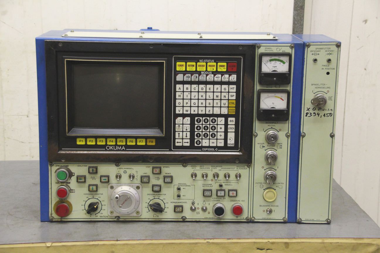 CNC control, control panel, machining center -Removed from a: CNC lathe, manufacturer: Okuma, type: LB15 -complete unit -Dimensions: 790/600/H495 mm -Weight: 79 kg