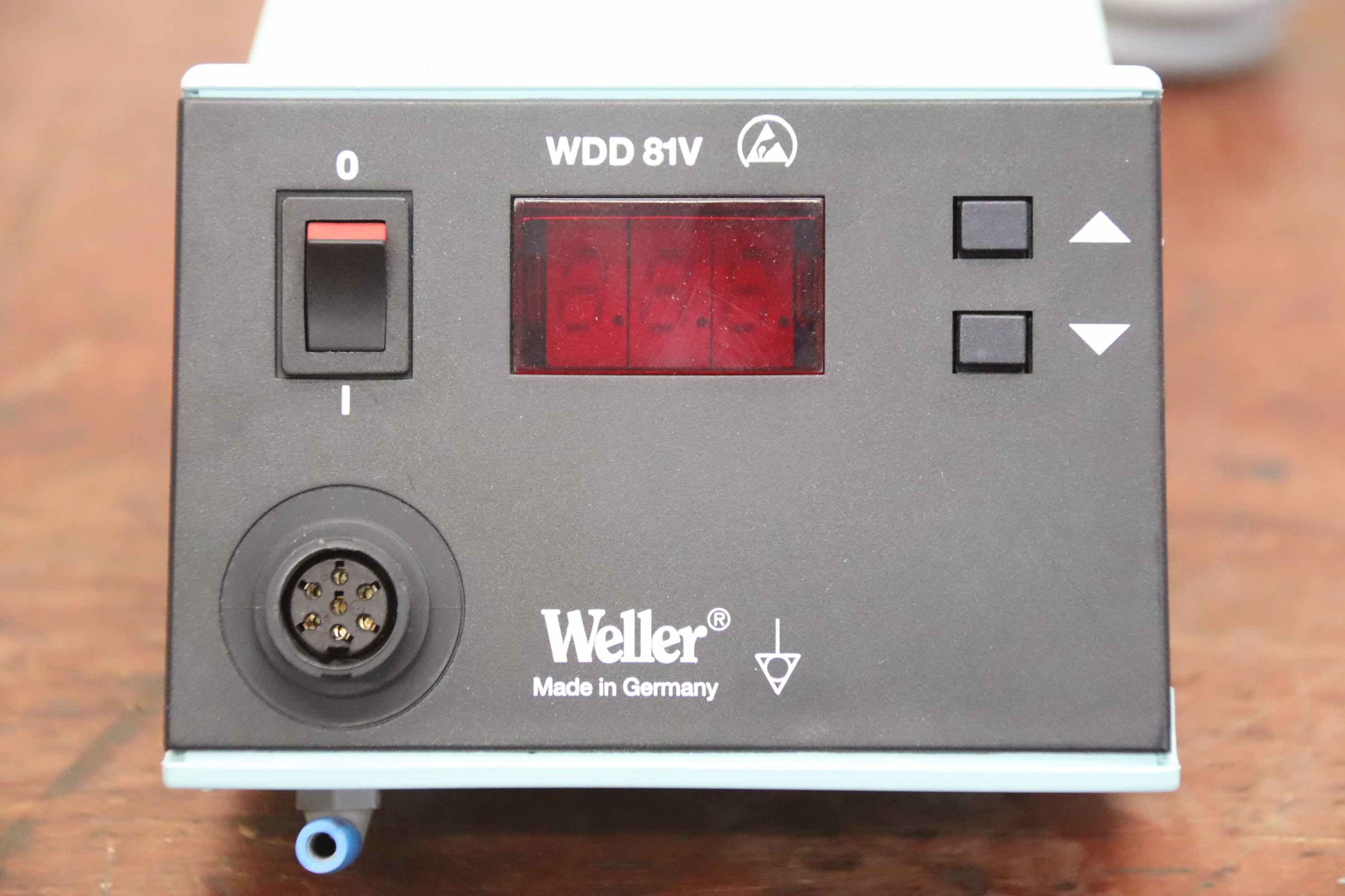 Soldering station, soldering iron, chip solder, soldering system, desoldering station-Manufacturer: Weller, desoldering station type WDD 81V-Voltage: 230/24 V-Operating pressure: 4-6 bar-Dimensions: 190/120/H110mm-Weight: 2.3 kg