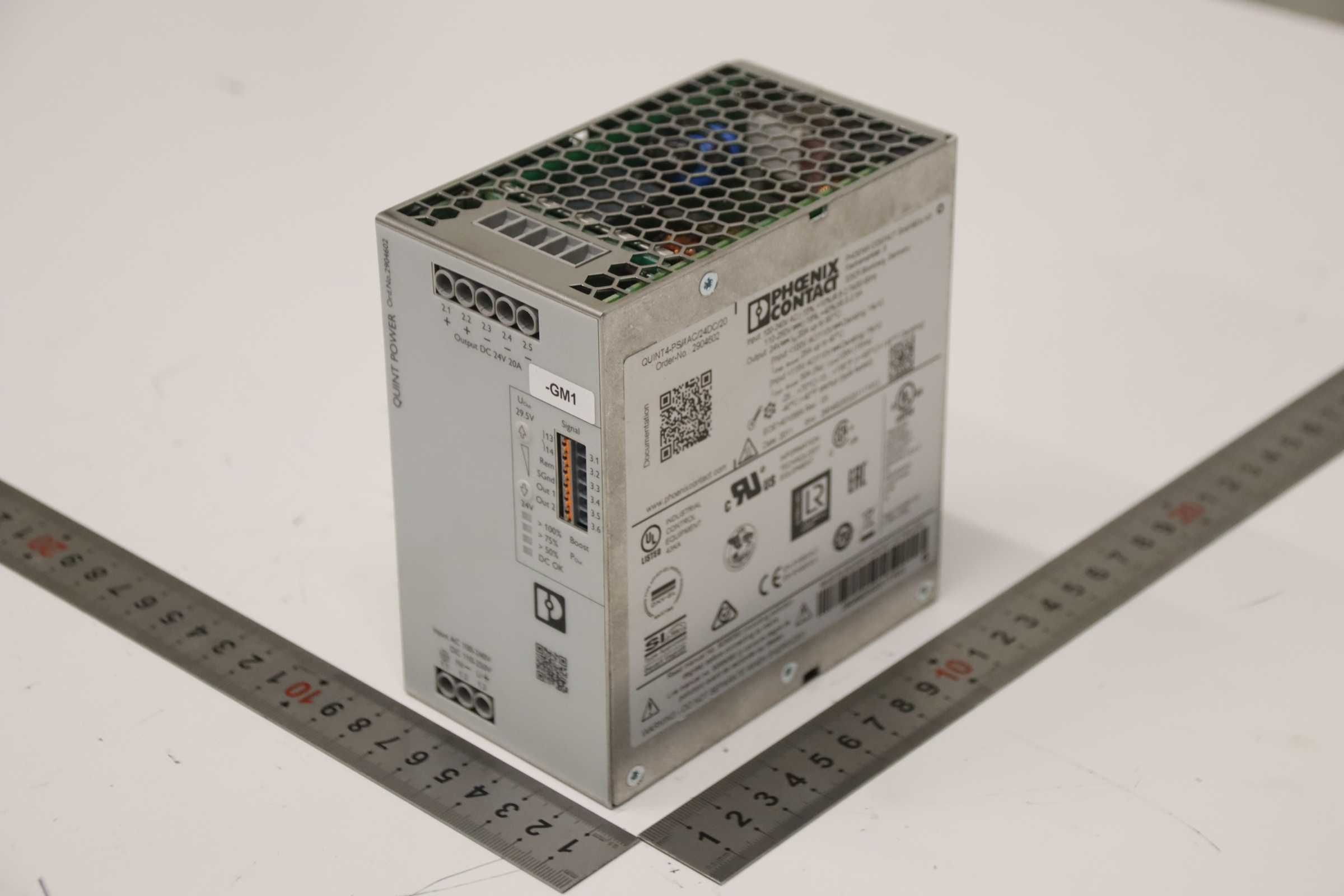 Power supply, power converter, power supply, switching power supply, DIN rail power supply, power supply, servo module, dual power supply -Manufacturer: Phoenix Contact Power supply Quint Power -Type: QUINT4-PS/1AC/24DC/20 -Order No.: 2904602 -Input: 100-240V AC -Output: DC 24V 20A -Number: 16x power supply available -Price: per piece -Dimensions: 130/70/H130 mm -Weight: 1.4 kg/pcs