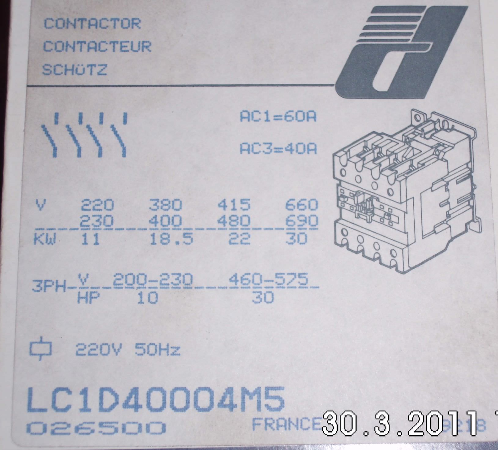 Schütz, Schütze, Leistungsschütz -Power contactor: 18.5 kW -Coil voltage: 220 AC -Number: 20x shooters available Price: per piece -Dimensions: 85/110/H110 mm -Weight: 1 kg