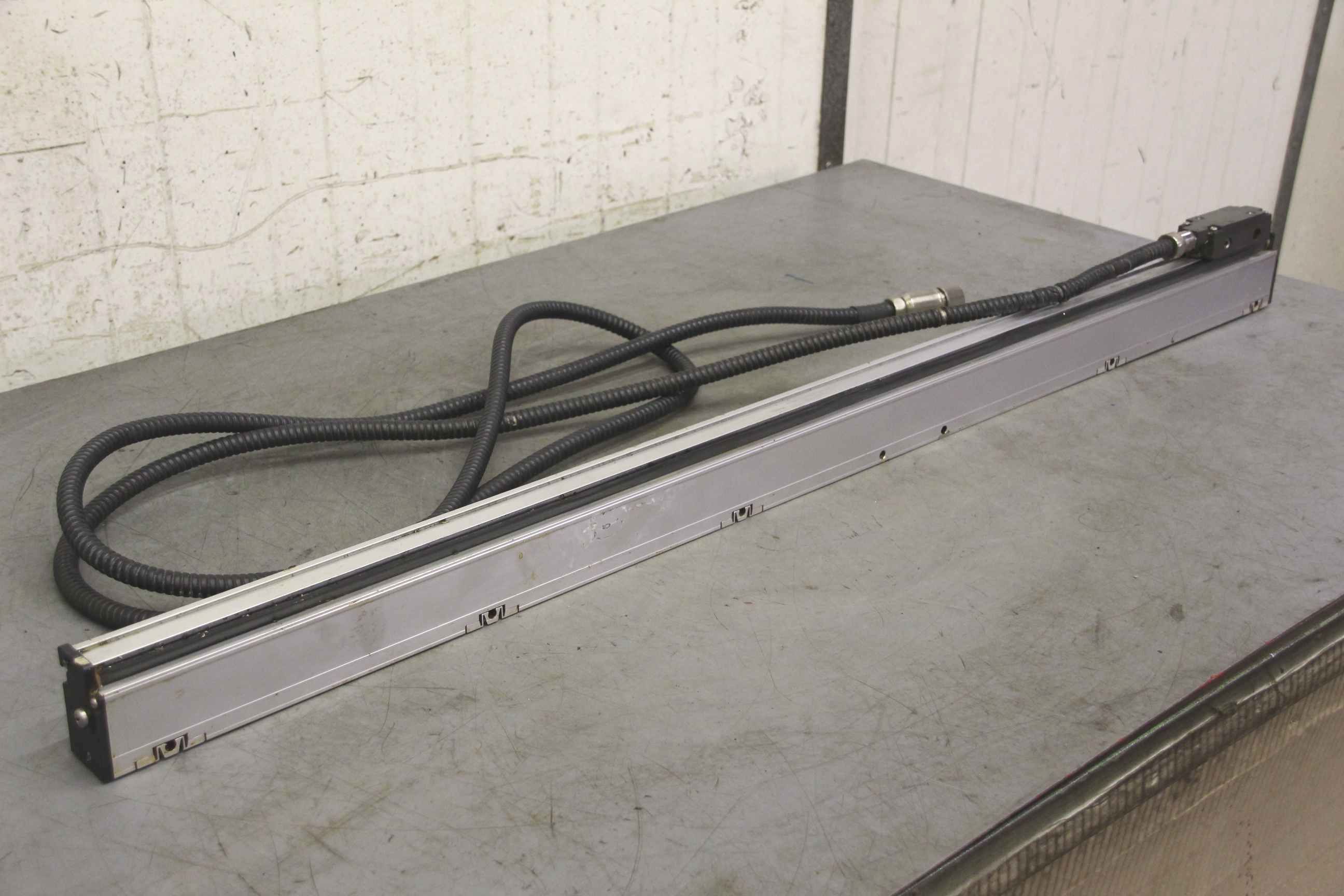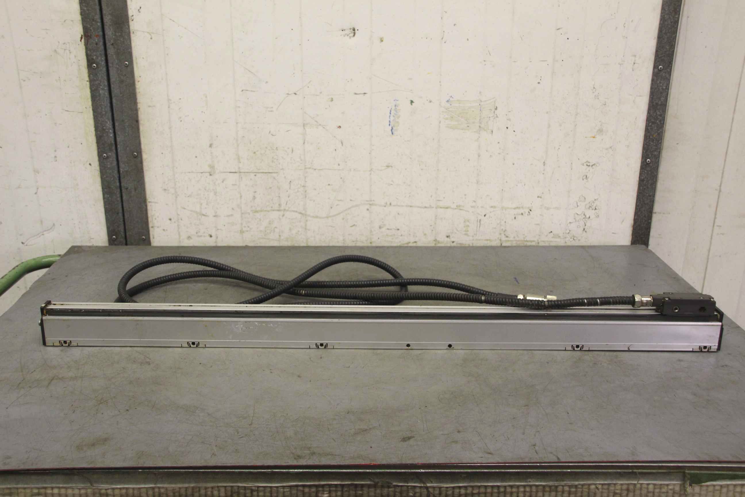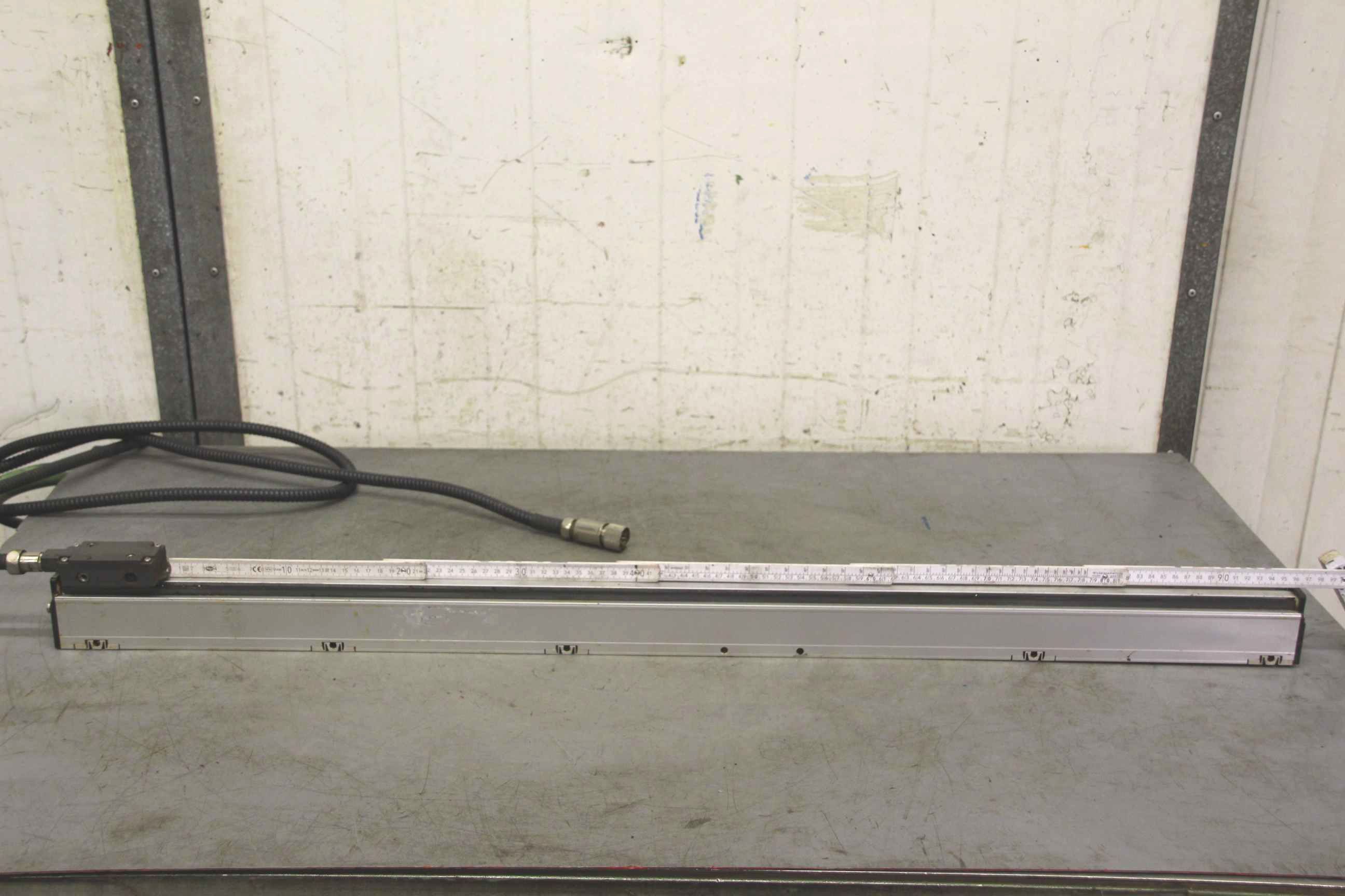 Glass scale, glass measuring scale, scale, digital display, measuring rod, length measuring system, length measuring device, linear scale, positioning display, digital scales, digital scale for digital display, linear encoder -Length measuring device: from Battenfeld BA-T2400 injection molding machine, 2 pieces -Measuring length: approx. 950 mm -Price/Sale: complete -Dimensions: 1060/35/H85 mm -Weight: 4 kg/pc.