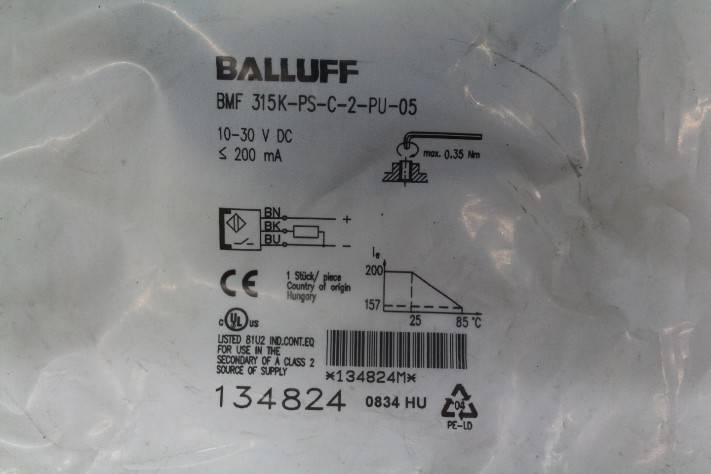 Proximity switch, cylinder sensor, magnetic field sensor-Product type: BMF 315K-PS-C-2-PU-05-Number: 6x available-Price: per piece-Weight: 70 g