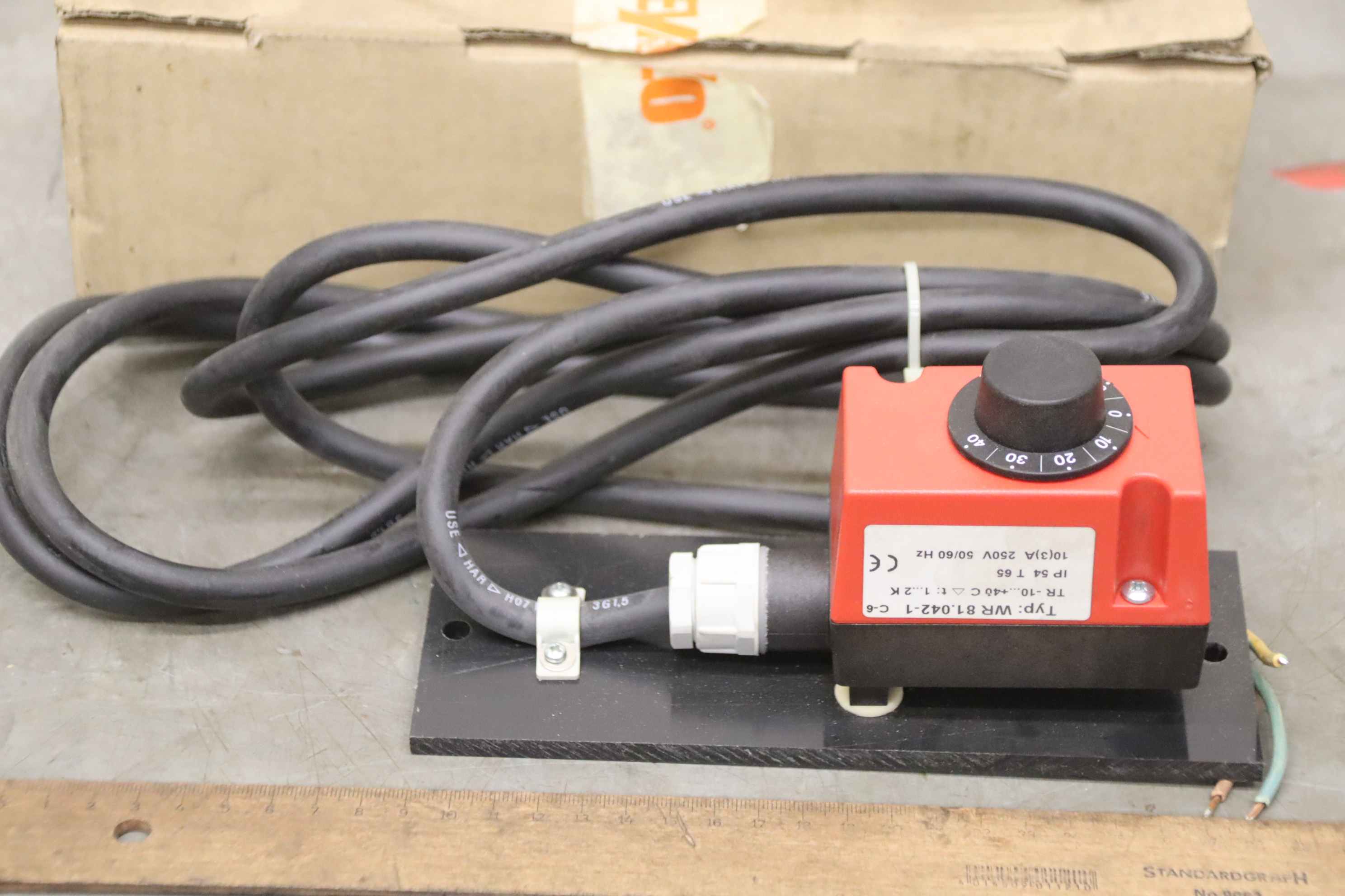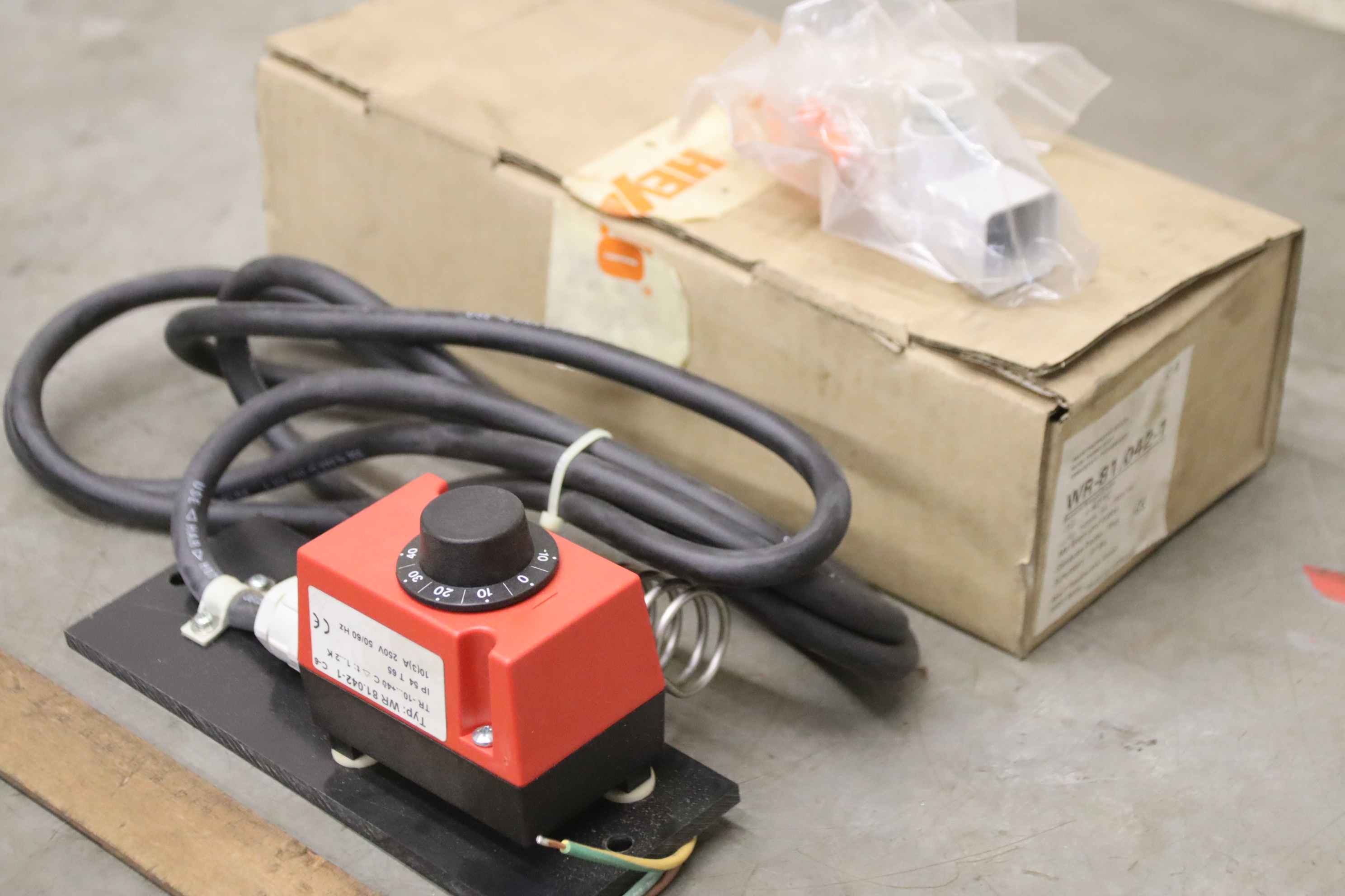Temperature controller, temperature sensor, temperature converter, temperature monitor, thermostat, flue gas thermostat, room temperature controller, capillary thermostat, industrial room thermostat -Manufacturer: Alre, room temperature controller, unused, original packaging -Type: WR-81.042-1 -Temperature range: -10 to 40 °C -Quantity: 2 thermostats available Price: per piece -Cardboard dimensions: 310/140/H90 mm -Weight: 1.0 kg