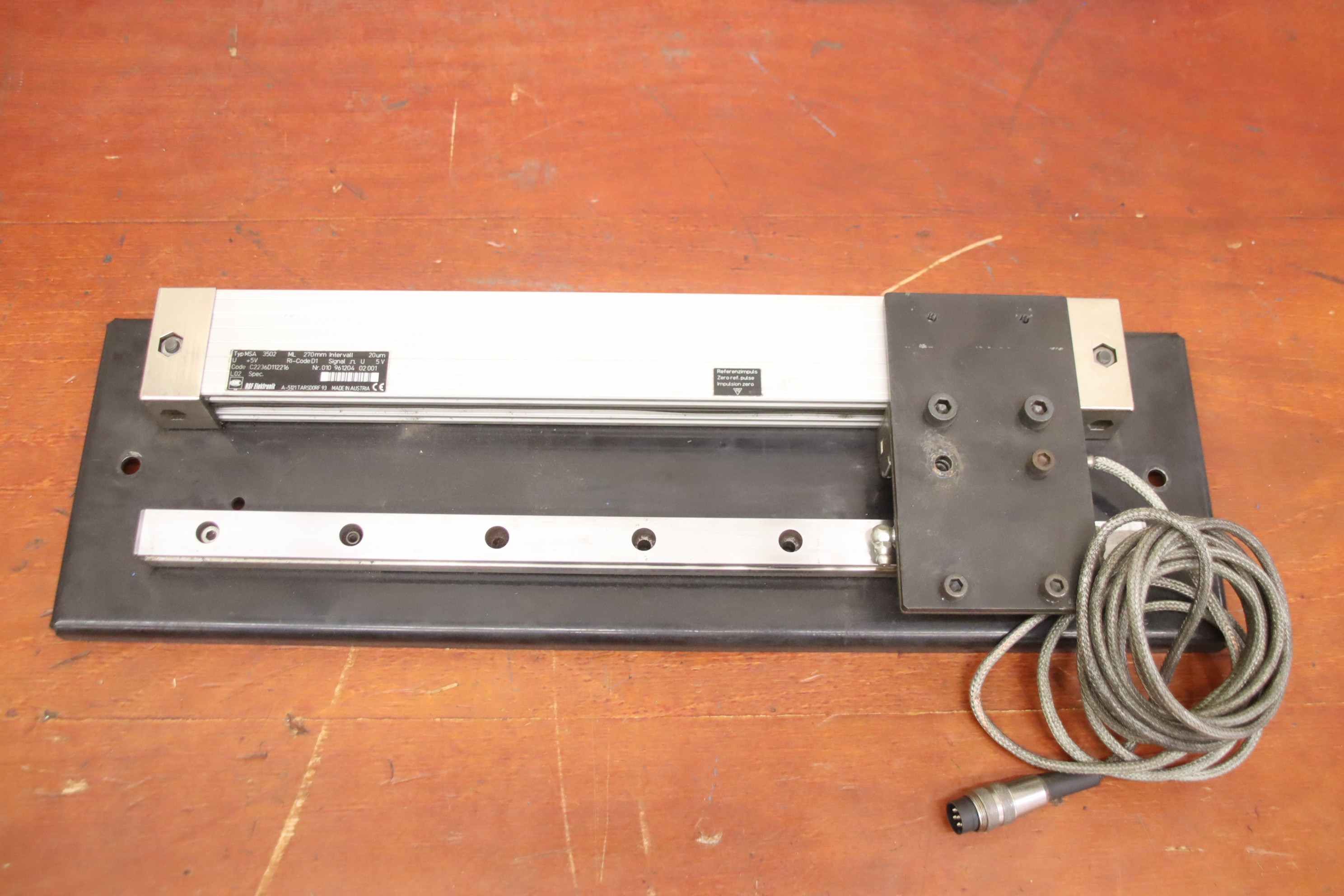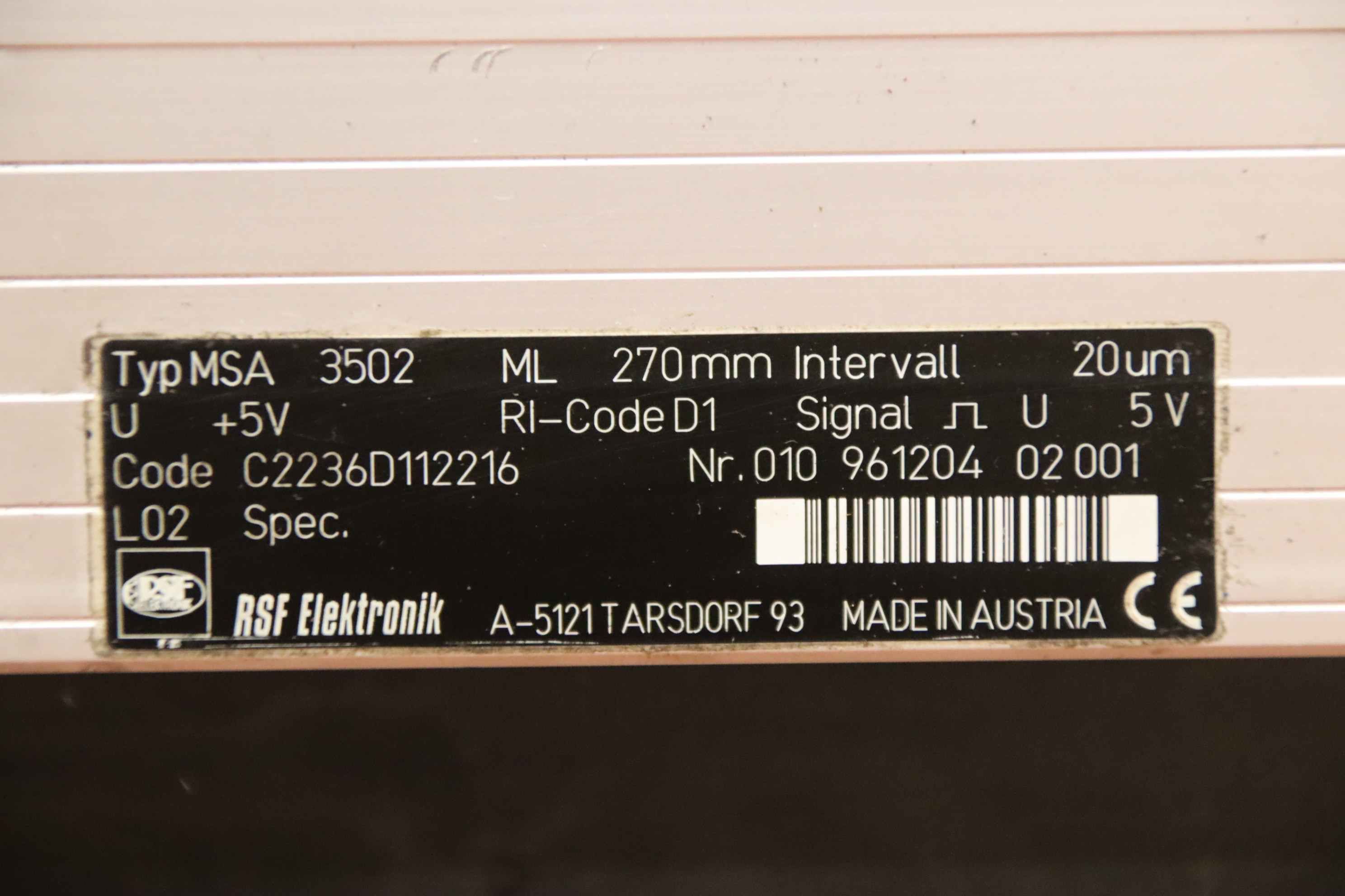 Digital ruler for press brakes, bending benches, guillotine shears... Glass ruler, glass measuring rod, scale, digital display, measuring rod, length measuring system, length measuring device, linear scale, positioning display, digital scales, linear encoder-Manufacturer: RSF Elektronik, linear encoder from press brake HACO type PPES 30135-Type: MSA 3502-Measuring length: approx. 270 mm-Quantity: 2x encoders available-Price per piece-Dimensions: 500/150/H50 mm-Weight: 5.4 kg/pc.