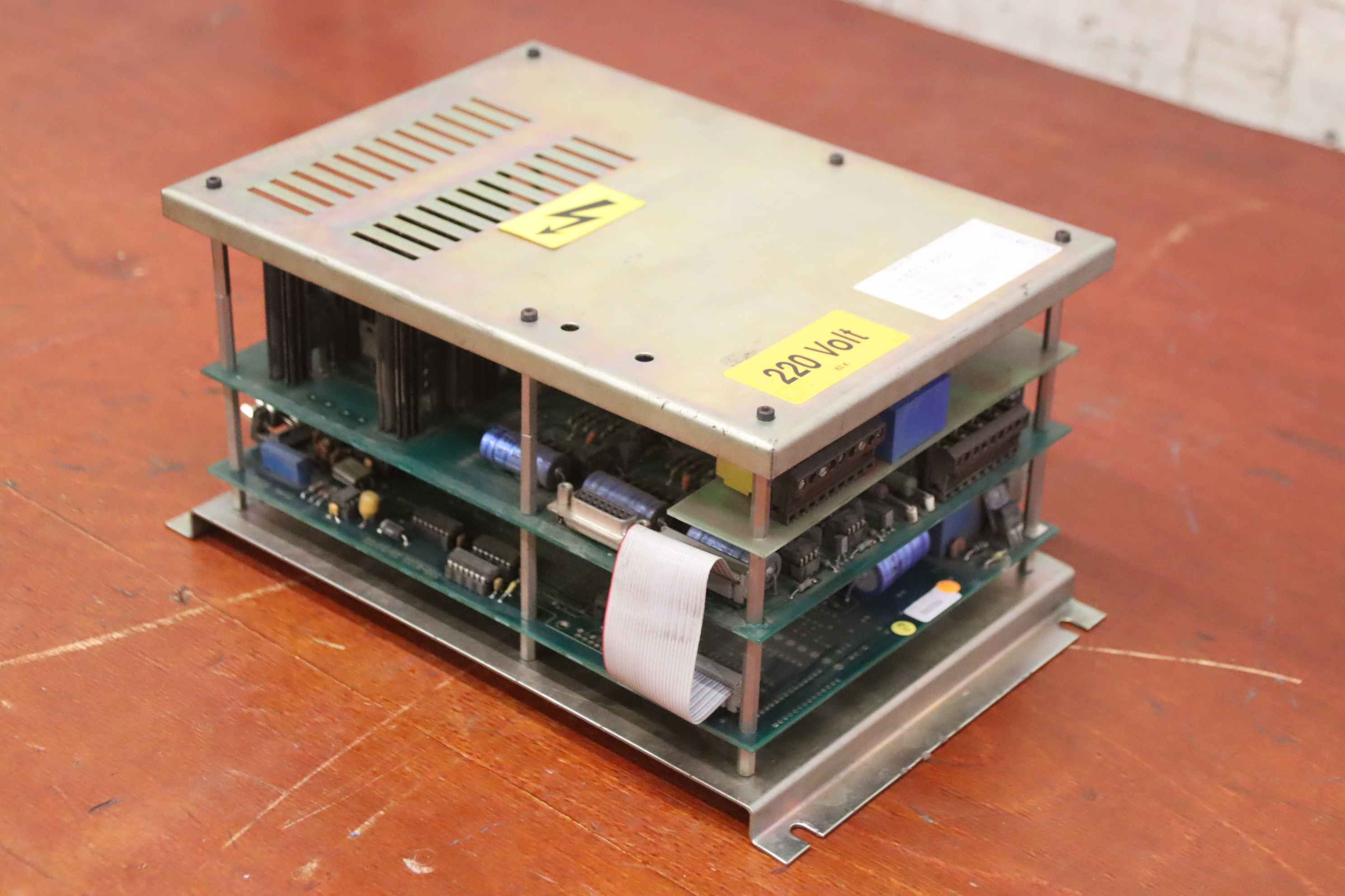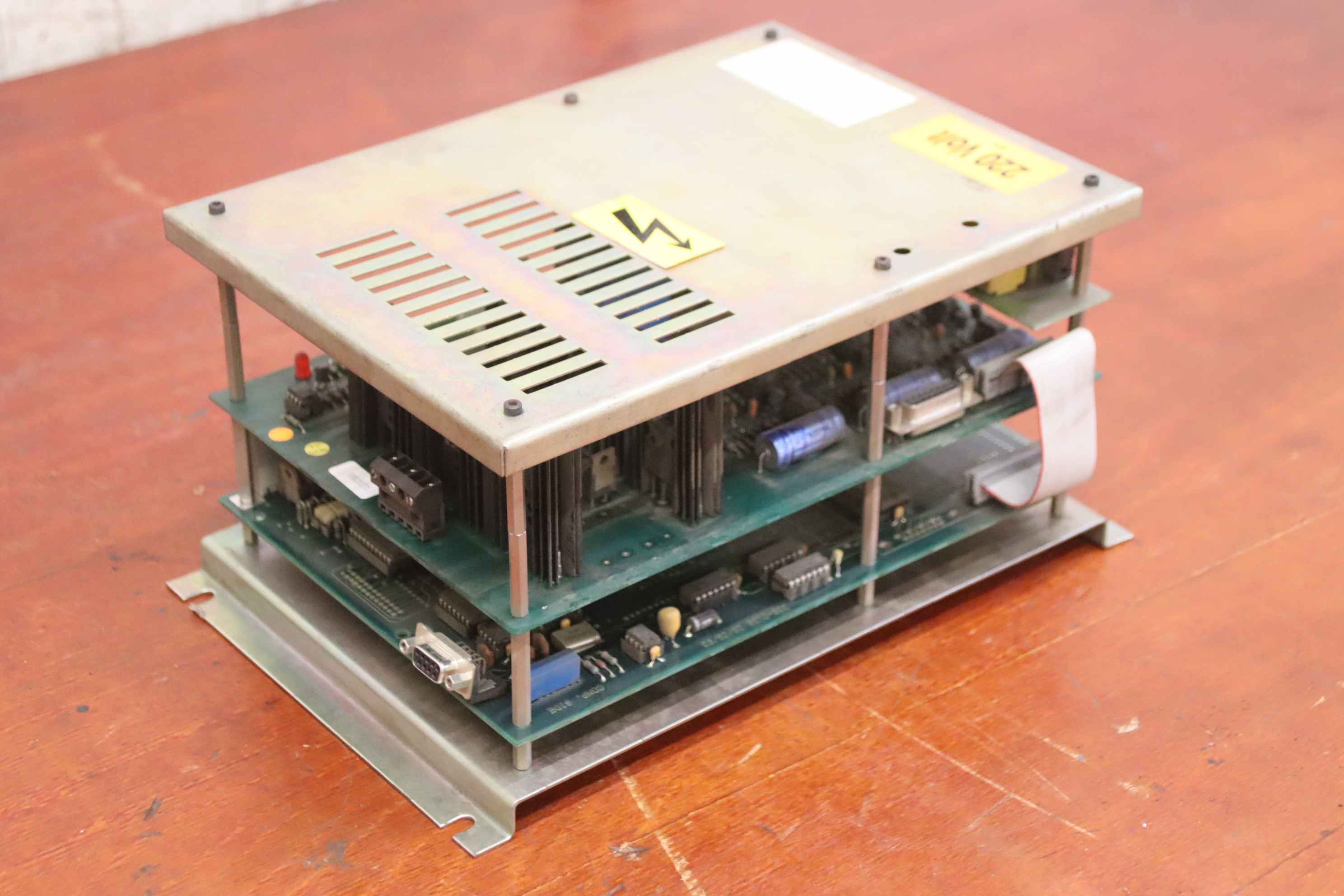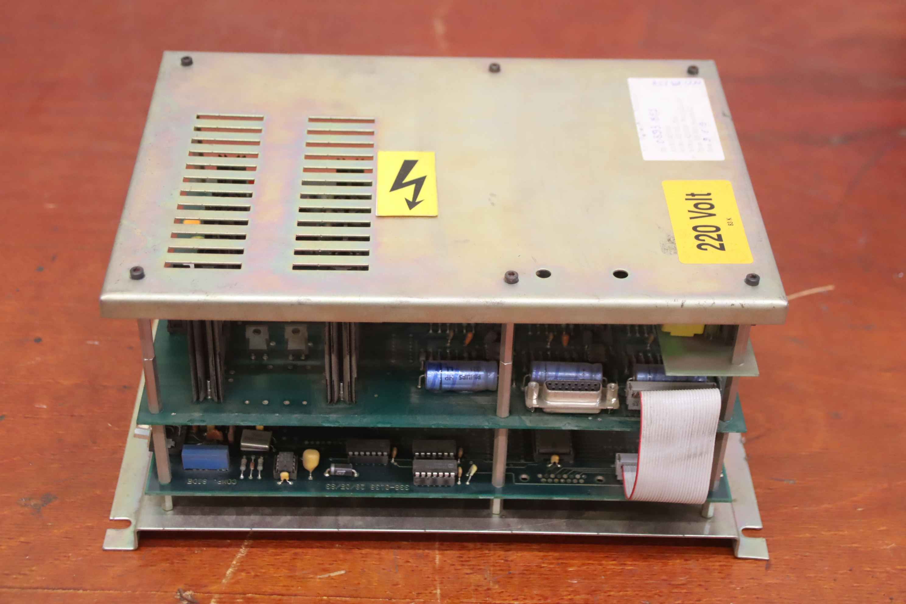 Servo drive, servo card, output module, CPU card, input processor, power supply, control card, input card, controller, converter, controller, servo module, axis amplifier, DC converter, axis amplifier, velocity control unit, spindle amplifier module, control unit-Manufacturer: Robosoft, control unit from press brake HACO type PPES 30135-Type: 411-1084 / 412-0112 / 412-0094 see photo nameplate-Dimensions: 295/190/H145 mm-Weight: 2.5 kg.