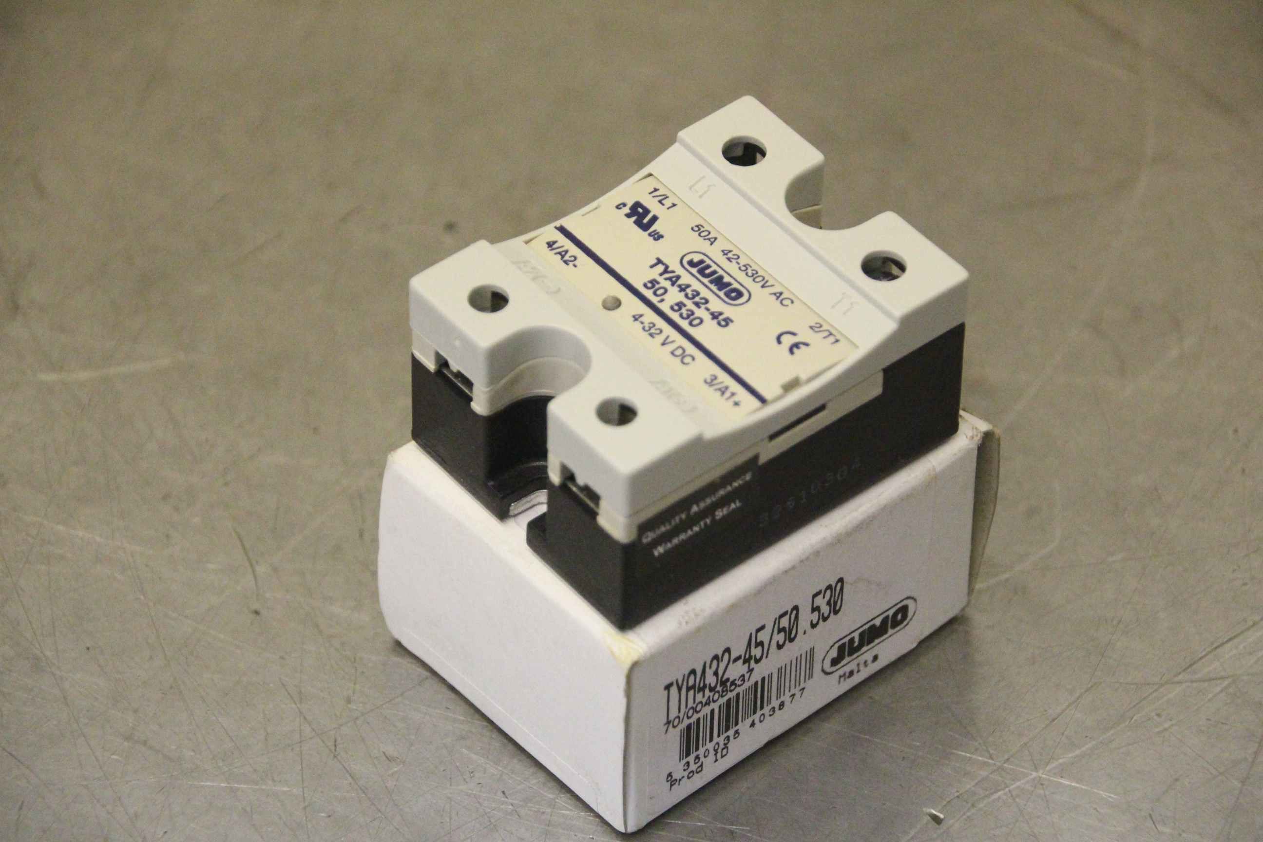 Auxiliary switch, automatic circuit breaker, fuse, line switch, line circuit breaker, thyristor circuit breaker-Manufacturer: Jumo, thyristor power switch unused OVP-Type: TYA32-45/50.530-Number: 2x switches available-Price: per piece-Dimension box: 60/50/H35 mm-Weight: 0.1 kg